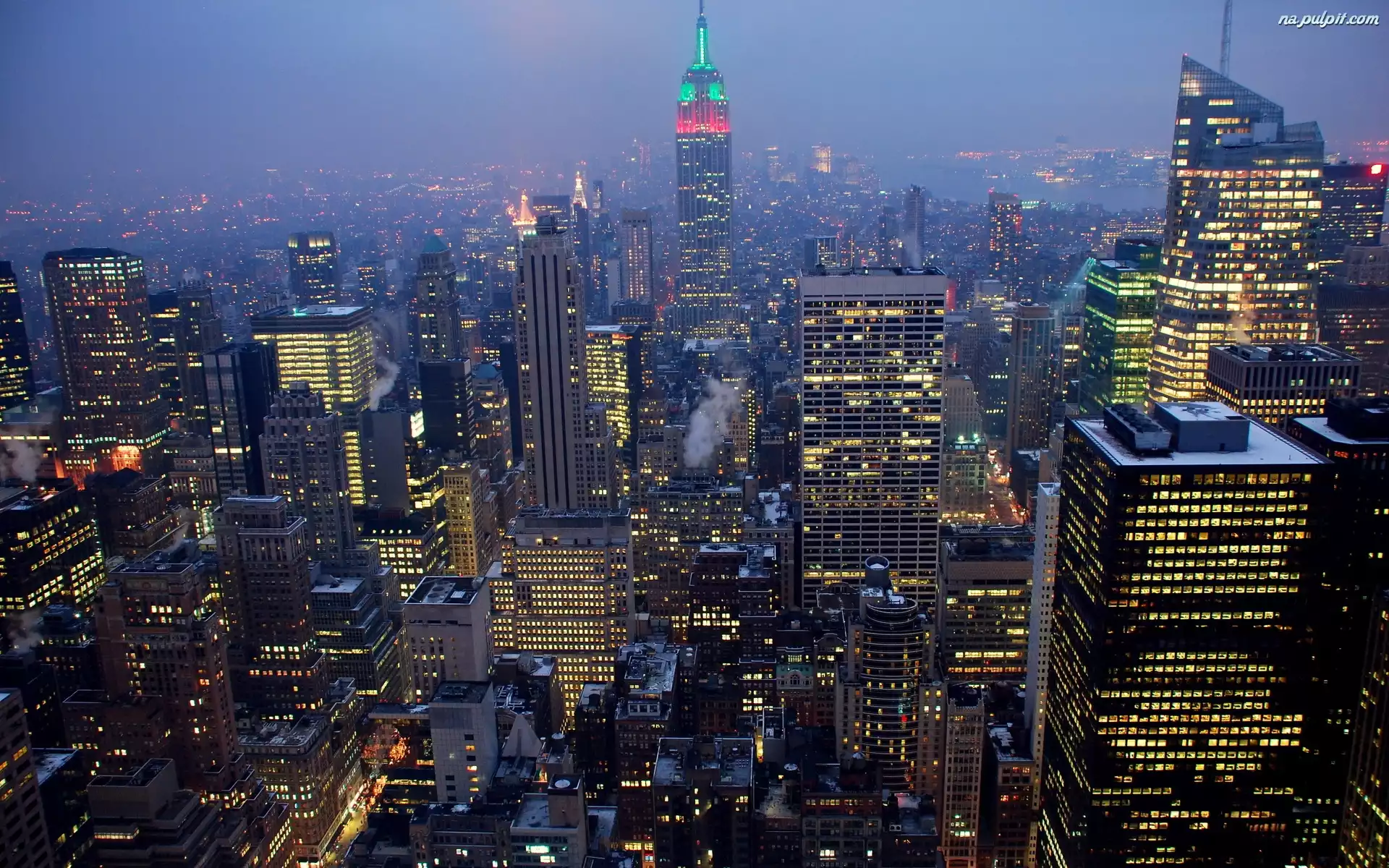 Noc, Chmur, Miasta, Jork, Nowy, Drapacze, Panorama