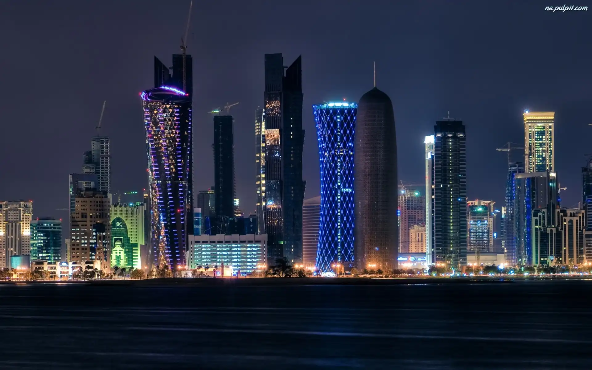 Noc, Chmur, Miasta, Katar, Ad-Dauha, Drapacze, Panorama Na Pulpit