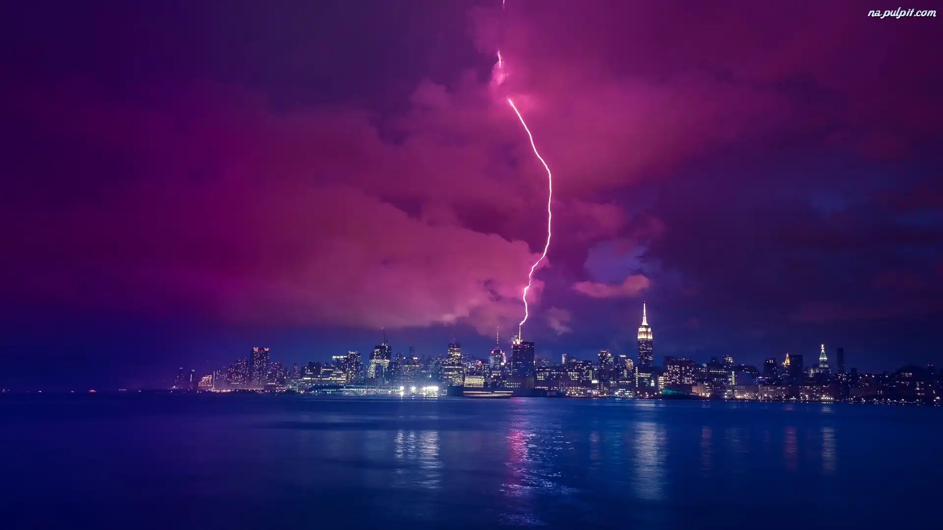 Piorun, Stany Zjednoczone, Nowy Jork, Chmury, Burza, Drapacze Chmur Na Pulpit