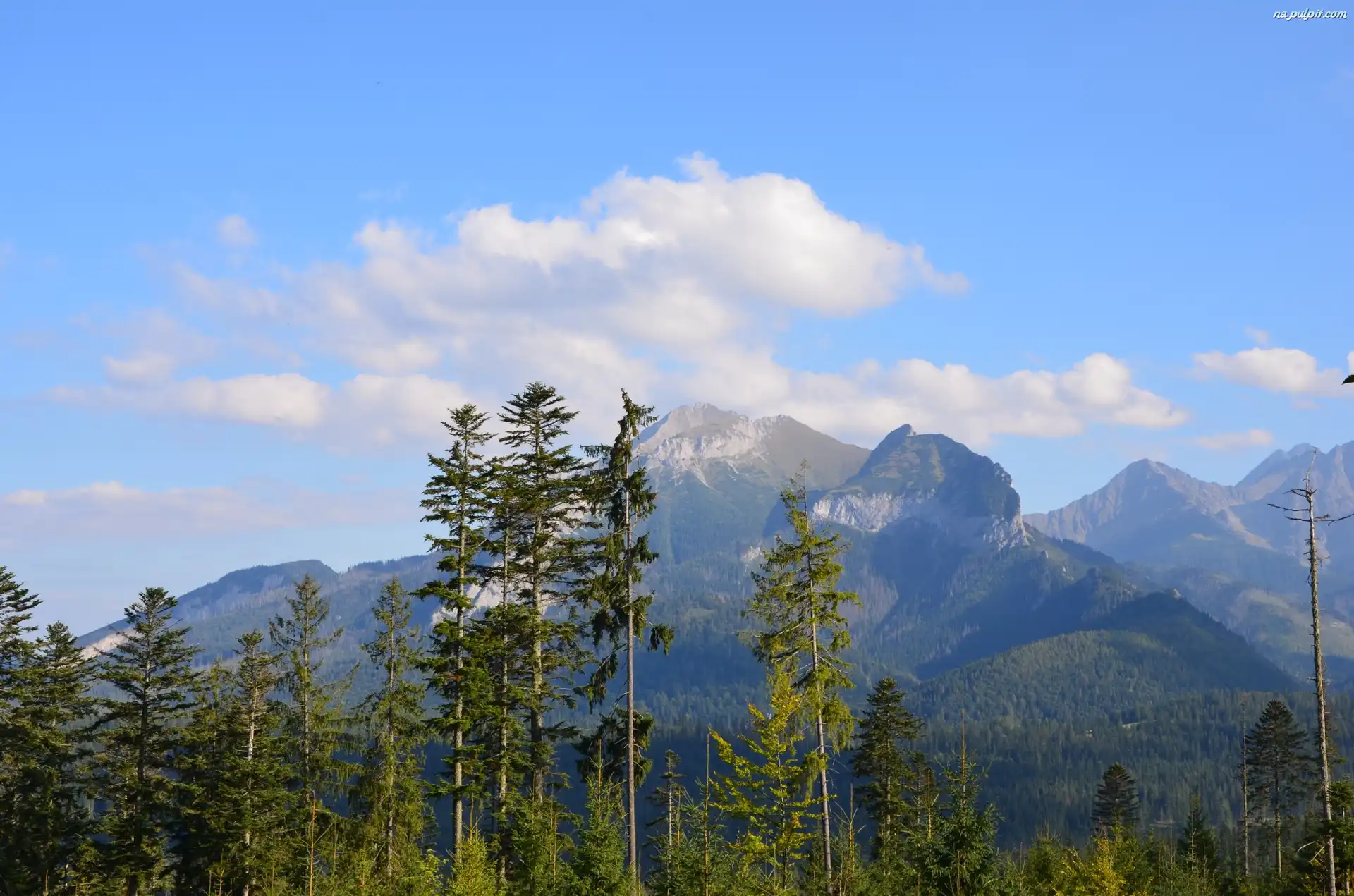 Chmura, Drzewa, Góry, Niebo Na Pulpit