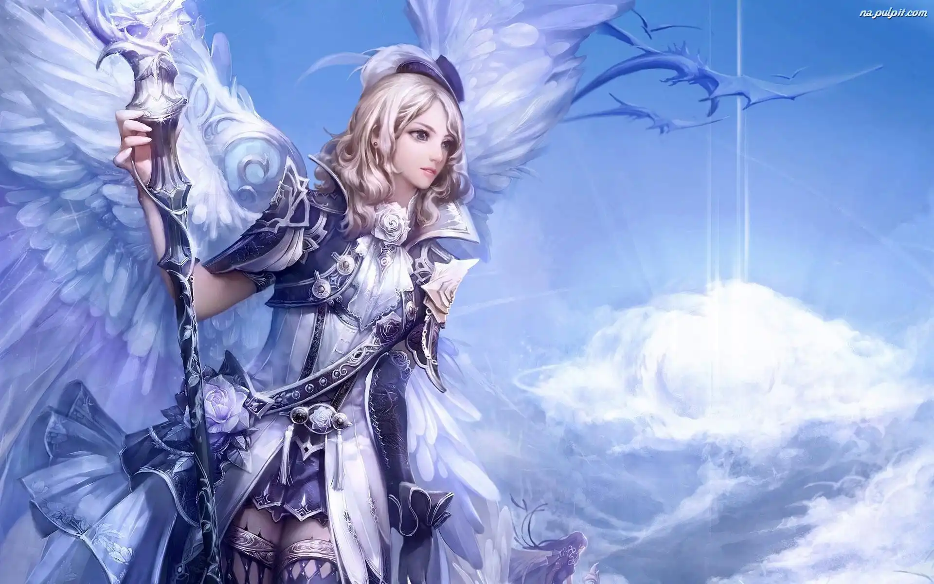 Chmura, Anioł, Kobieta, Berło