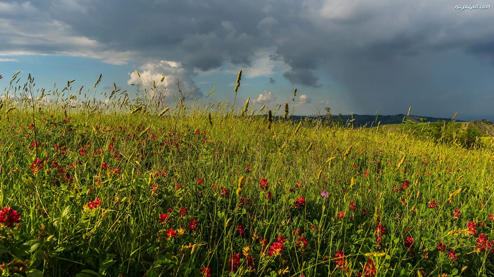 Chmury, Polne, Kwiatki, Łąka, Trawa Na Pulpit