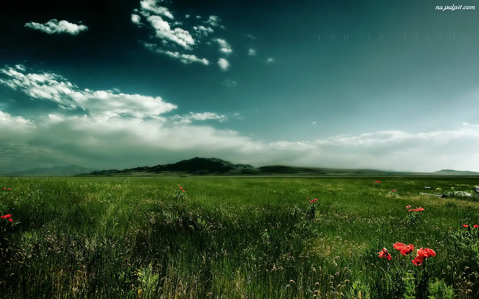 Chmury, Trawy, Łąka, Maki Na Pulpit