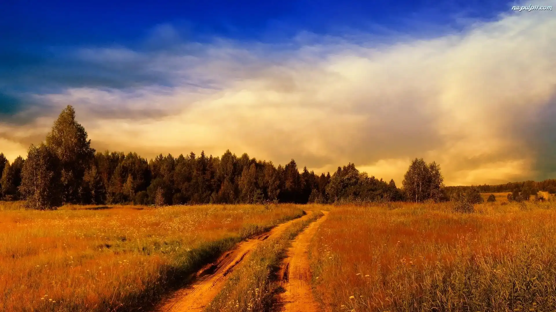 Chmury, Droga, Łąki, Las Na Pulpit