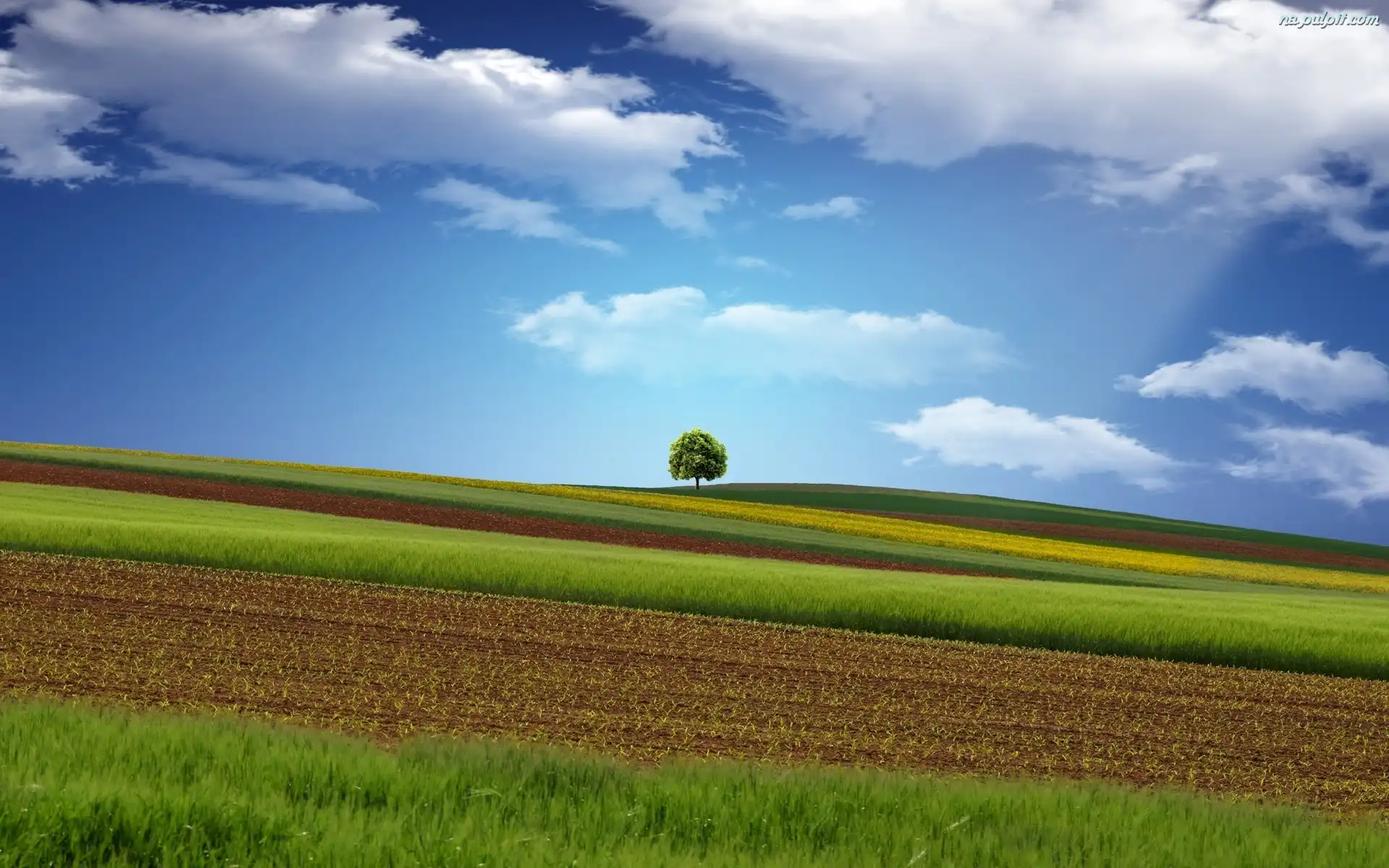 Chmury, Pola, Łąki, Drzewo Na Pulpit