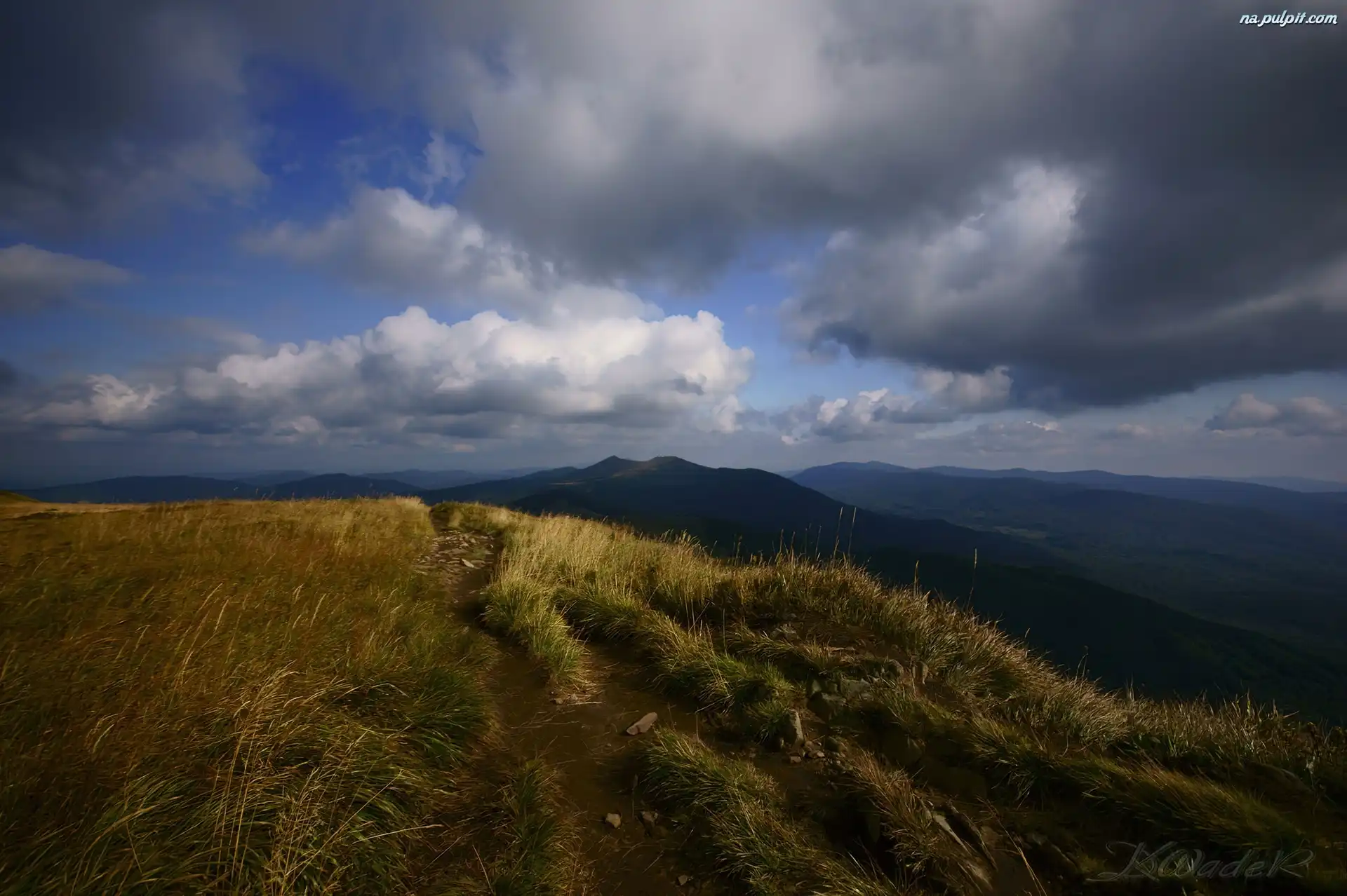 Chmury, Góry, Bieszczady, Trawa Na Pulpit