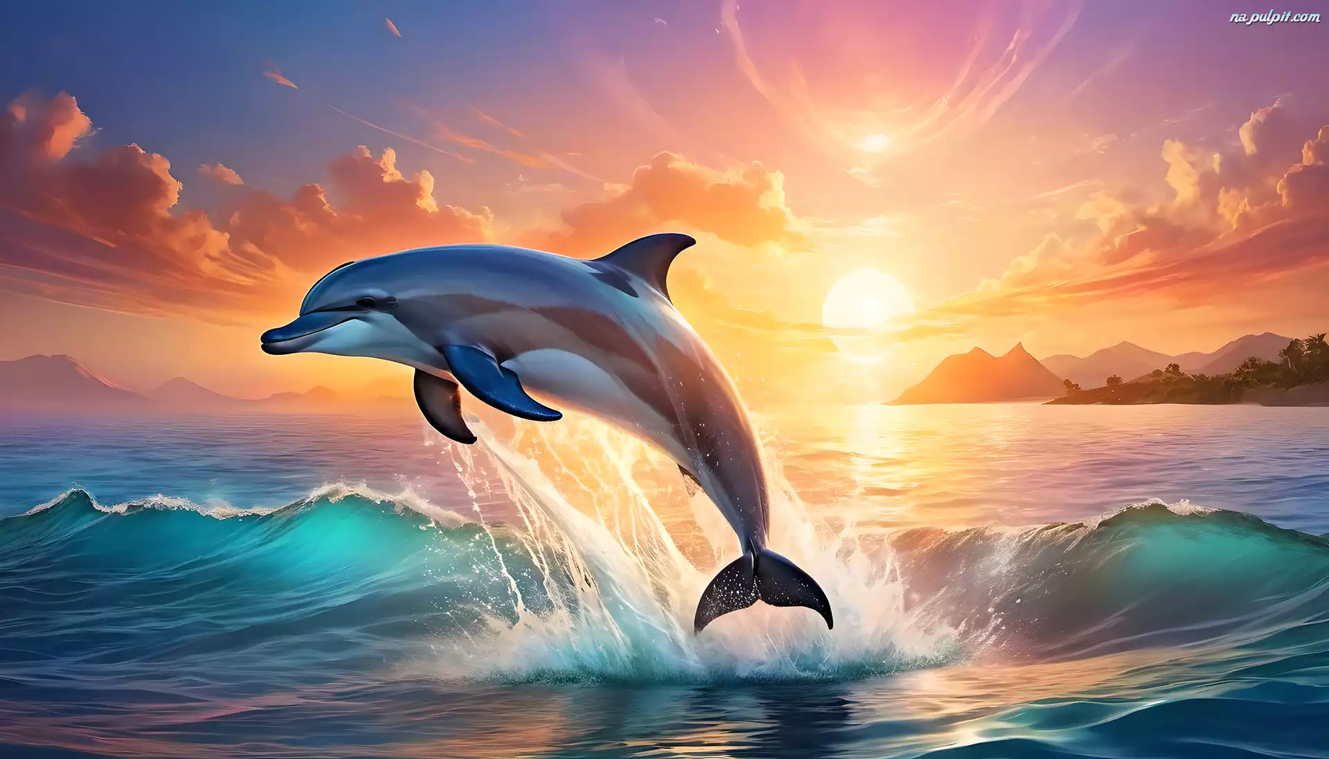 Morze, Delfin, Piana Jezioro, Zachód Słońca pasy, Wektorowa, 3D, pomarańczowe Delfiny Delfiny, Woda Puchatek, Przejedzony, Kubuś Lasery, Różnokolorowe, Smugi Zdjęcie, Delfin, Morze, Skok Zachód Słońca, Most Drzewo, Zachód Słońca Obrazek, Emo Delfin Słońce, Szalupy, Żaglowce Smok, Kobieta