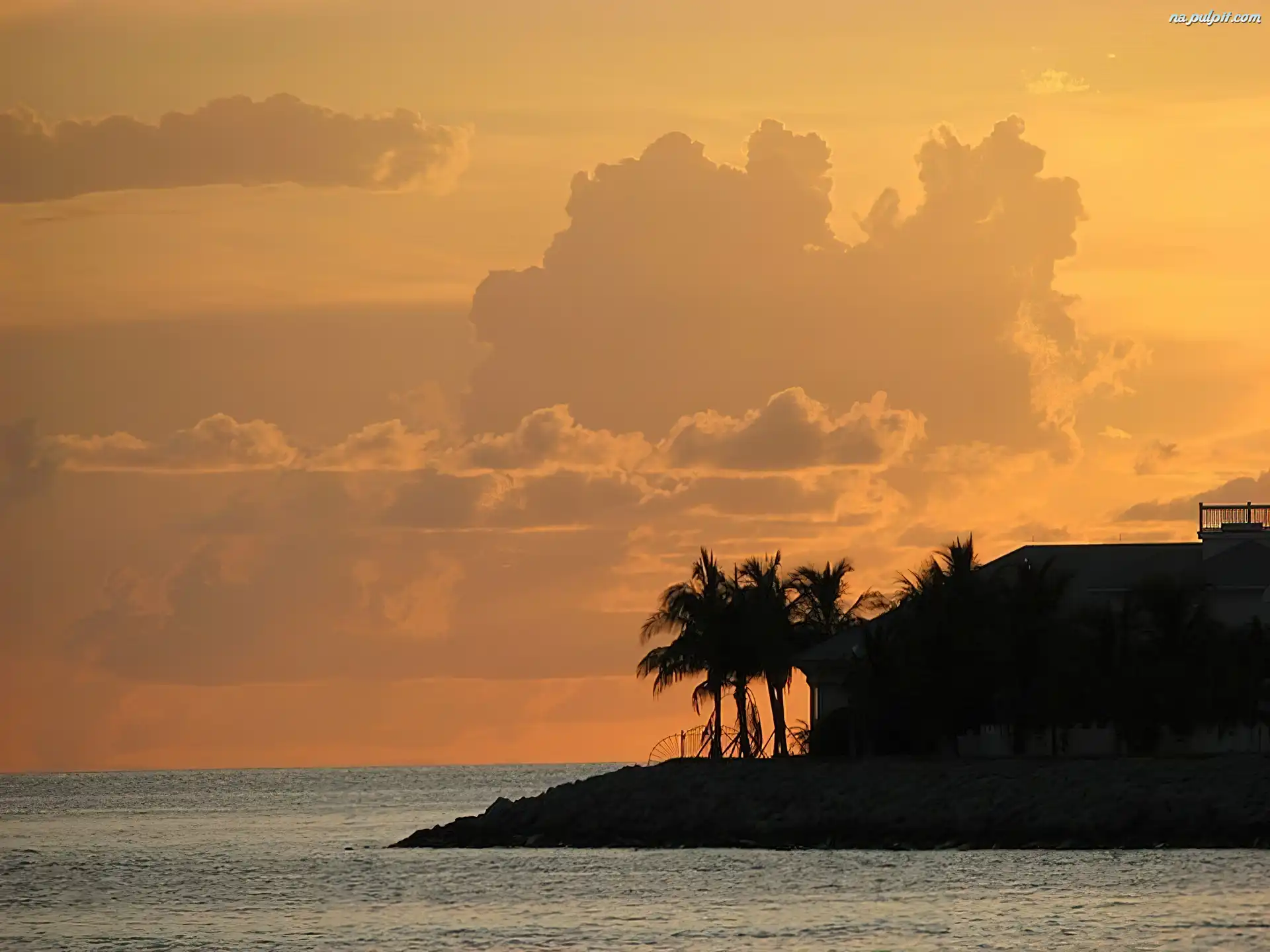 Dom, Palmy, Morze, Chmury Na Pulpit