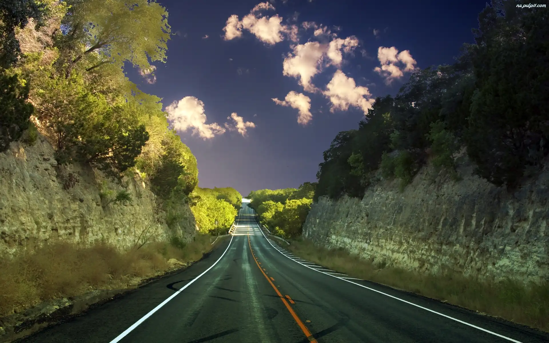 Chmury, Skały, Droga, Drzewa Na Pulpit