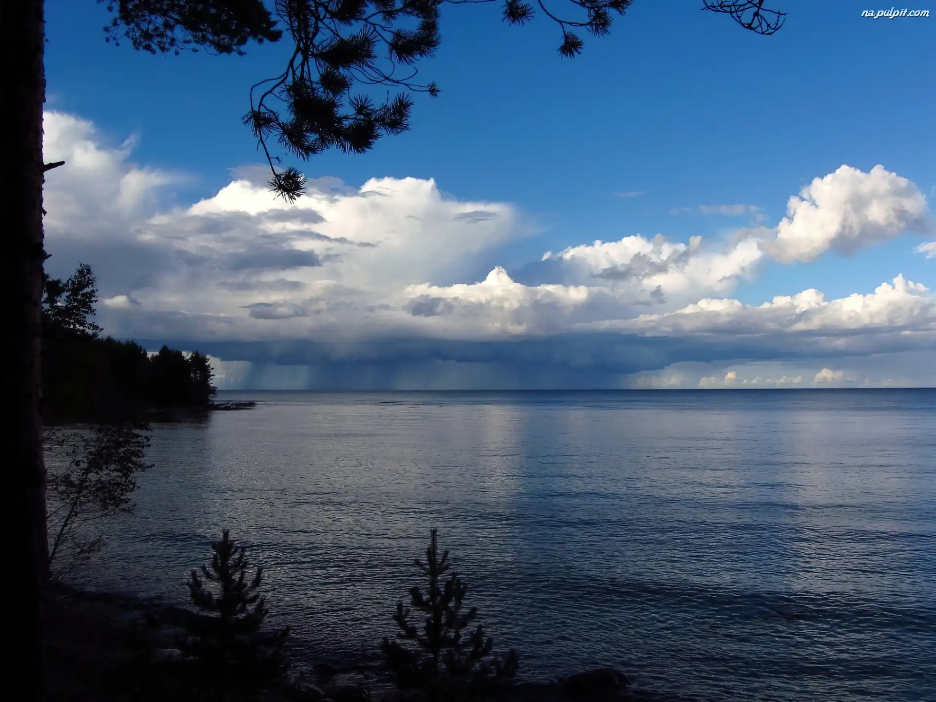 Drzewa, Chmury, Jezioro Na Pulpit
