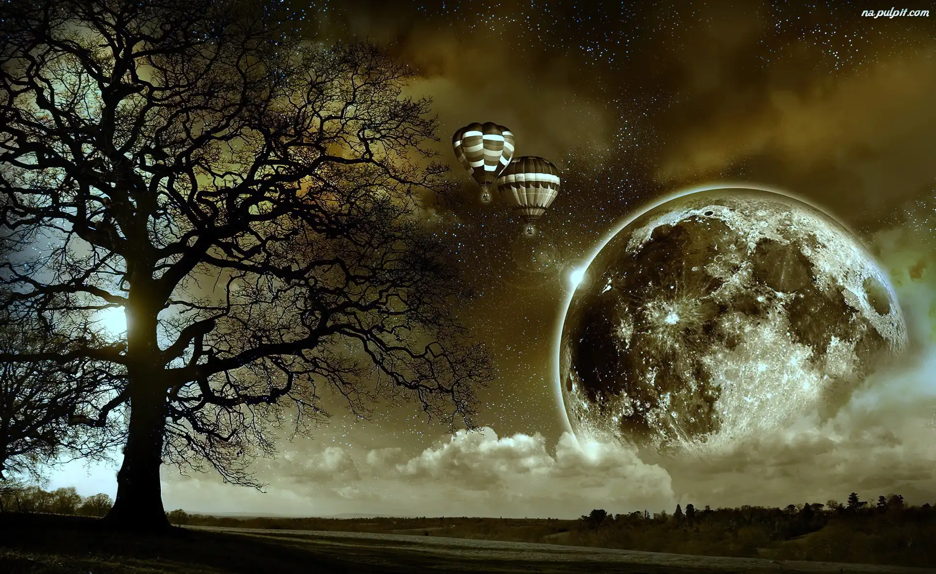 Chmury, Balony, Drzewo, Planeta Na Pulpit