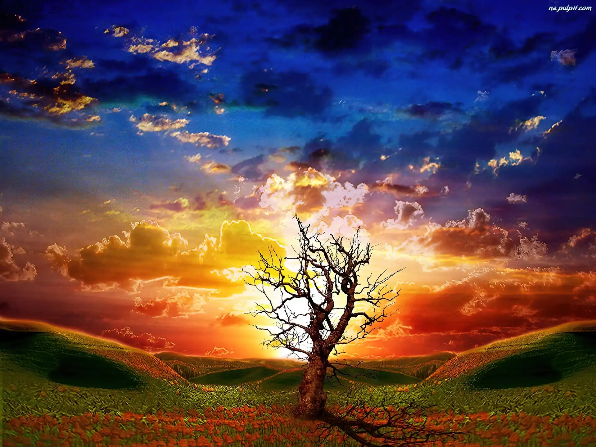 Chmury, Trawa, Drzewo, Niebo Na Pulpit