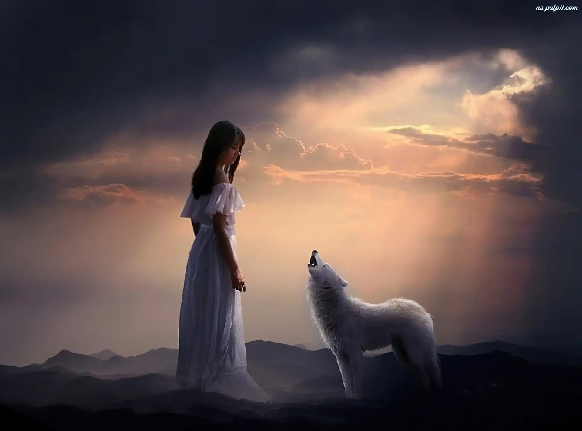 Chmury, Biały, Dziewczyna, Wilk Na Pulpit