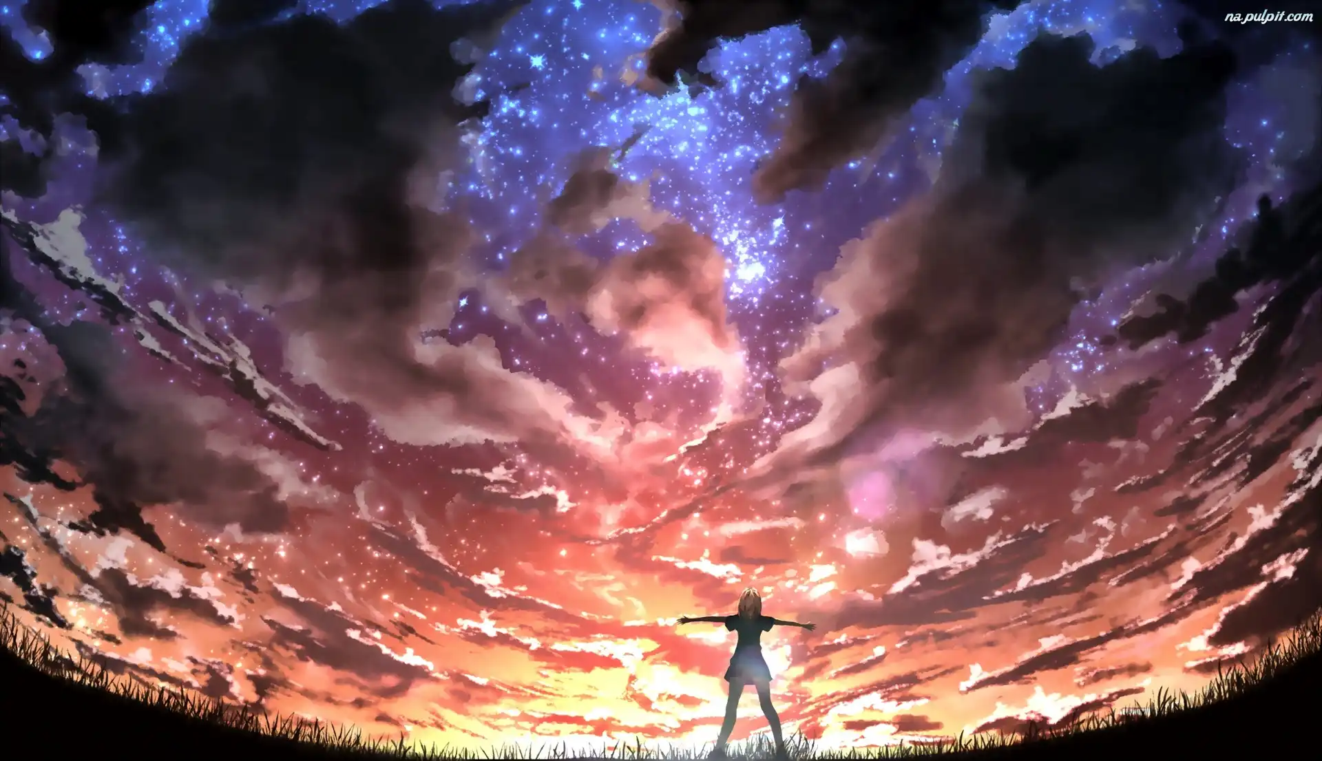 Chmury, Niebo, Dziewczyna, Gwiazdy Na Pulpit