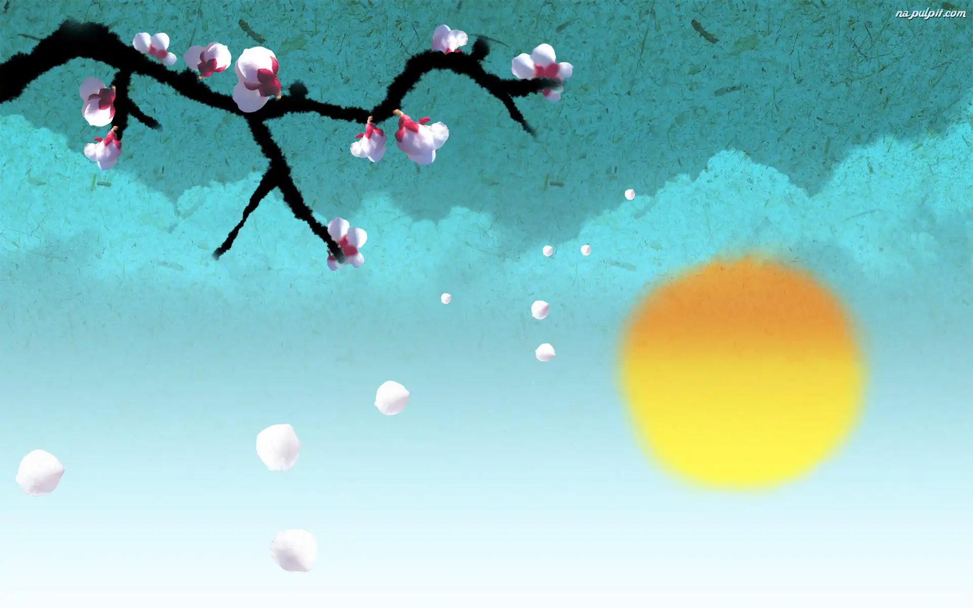 Chmury, Kwiaty, Gałązka, Słońce Na Pulpit