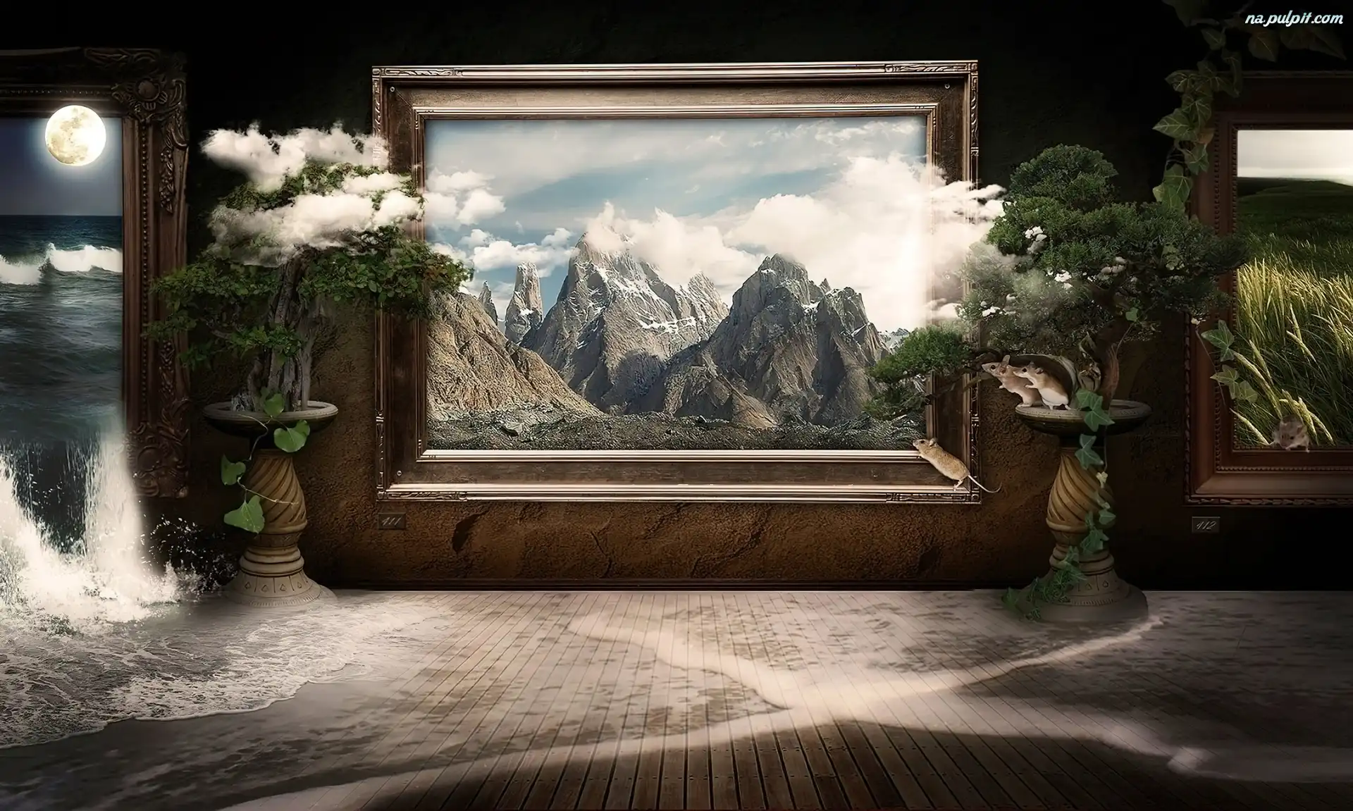 Chmury, Grafika, 4D, Morze, Góry, Obrazy