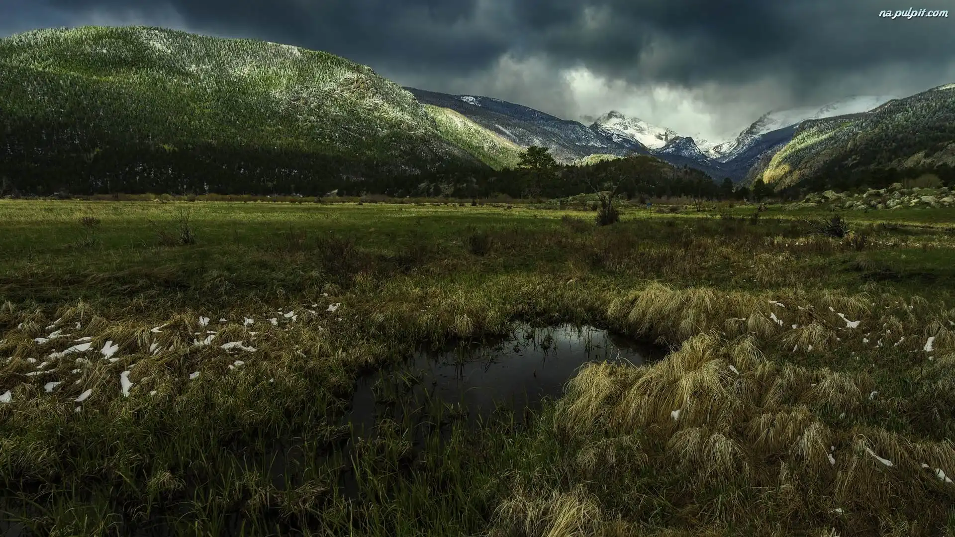 Chmury, Trawa, Łąka, Góry, Ciemne Na Pulpit