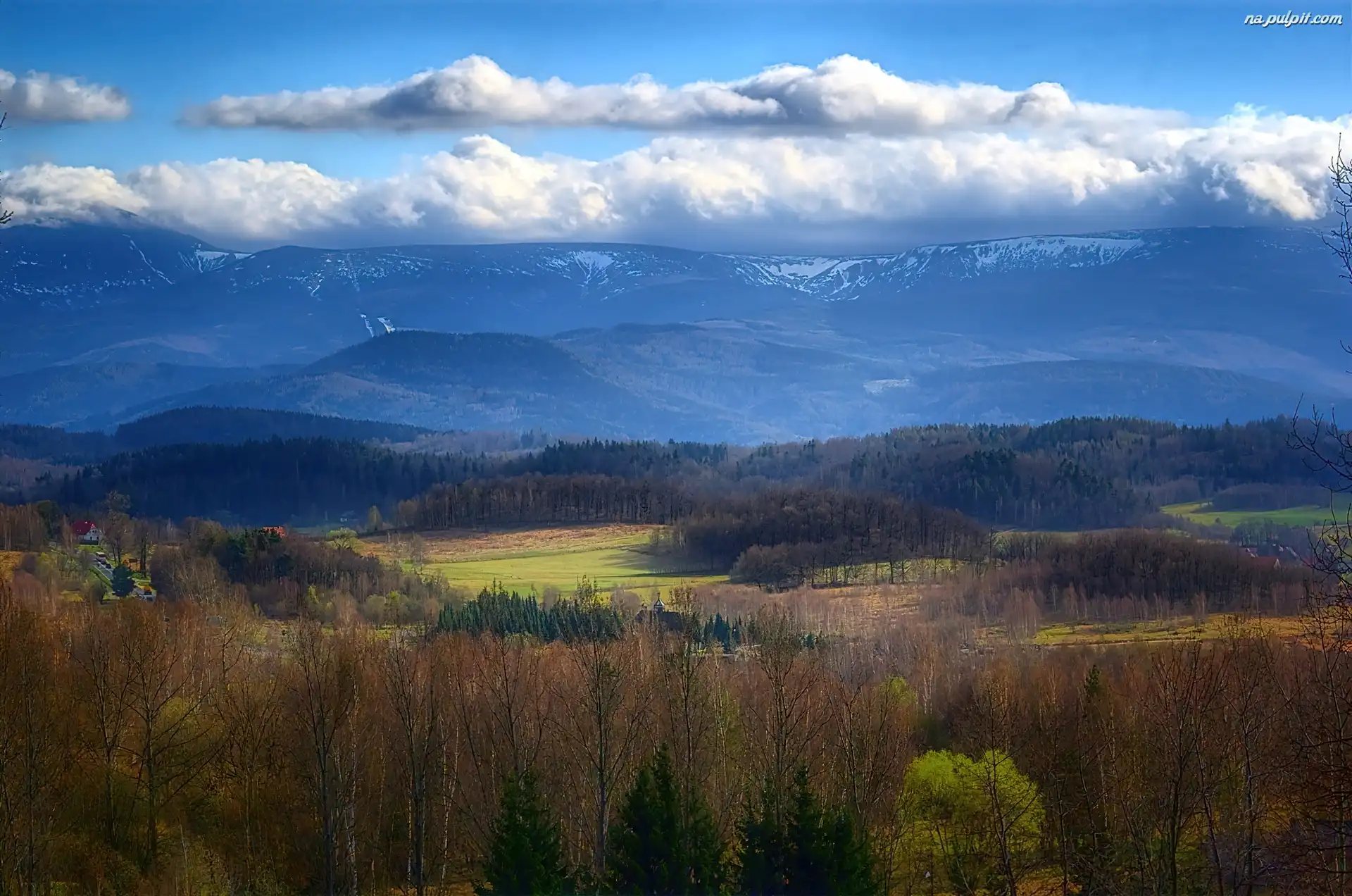 Chmury, Las, Drzewa, Szczyty, Góry, Śnieg Na Pulpit