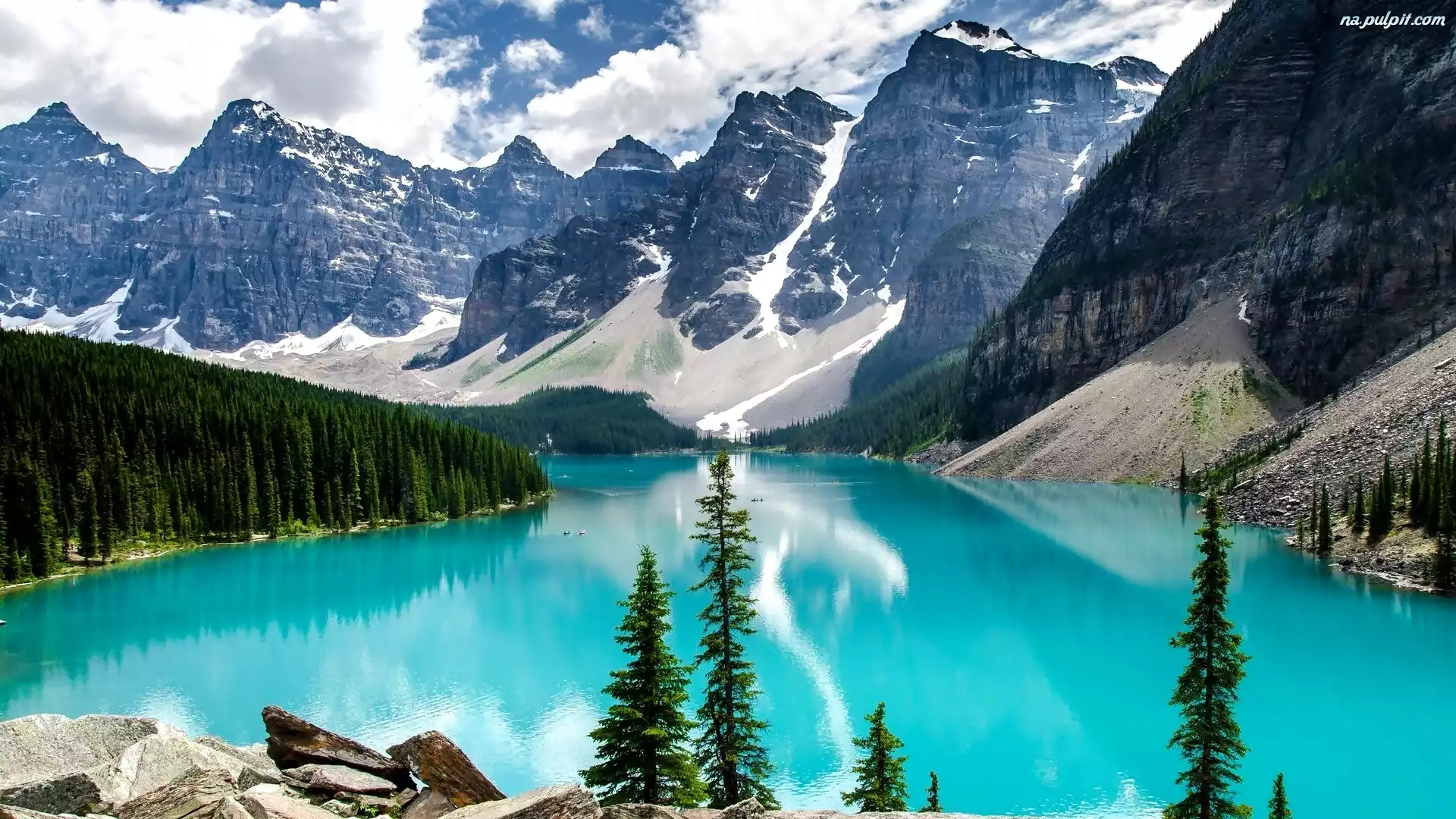 Chmury, Jeziora, Góry, Drzewa Na Pulpit