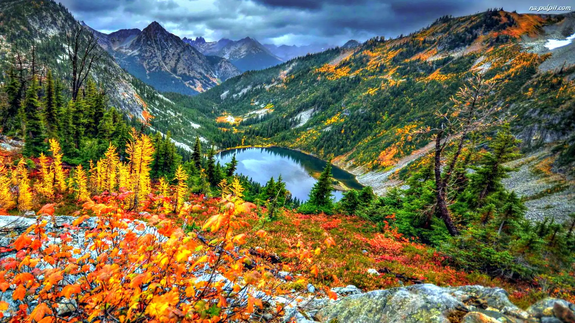 Chmury, Jezioro, Góry, Drzewa Na Pulpit