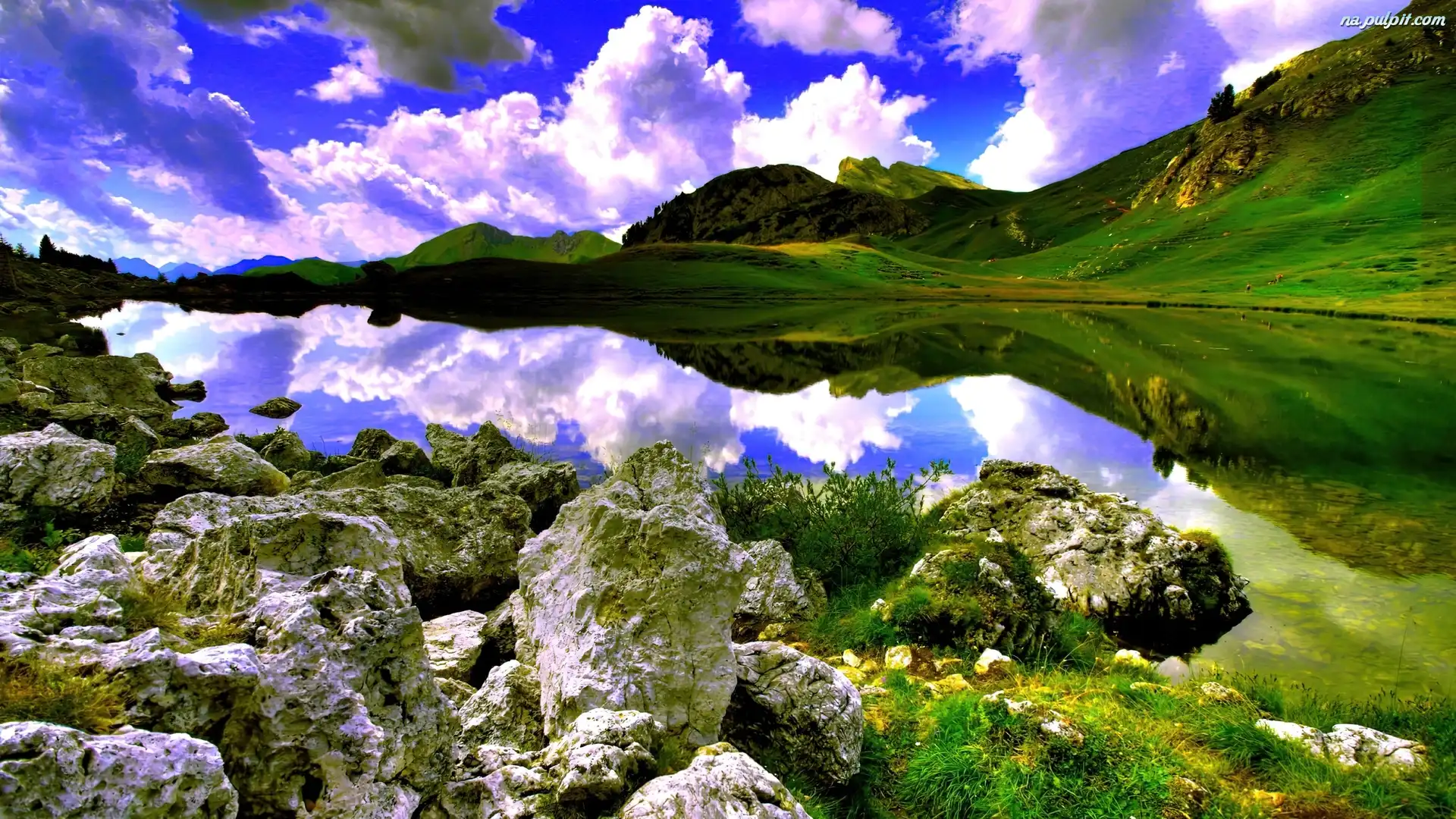 Chmury, Jezioro, Góry, Kamienie Na Pulpit