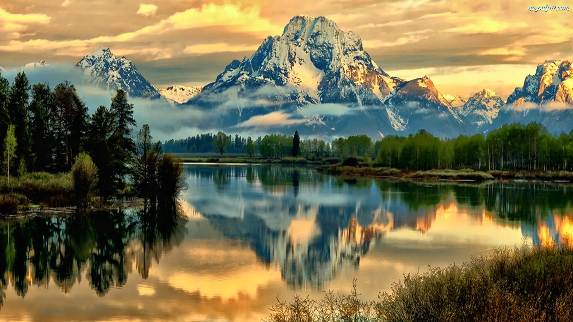Chmury, Odbicie, Jezioro, Góry, Drzewa Na Pulpit