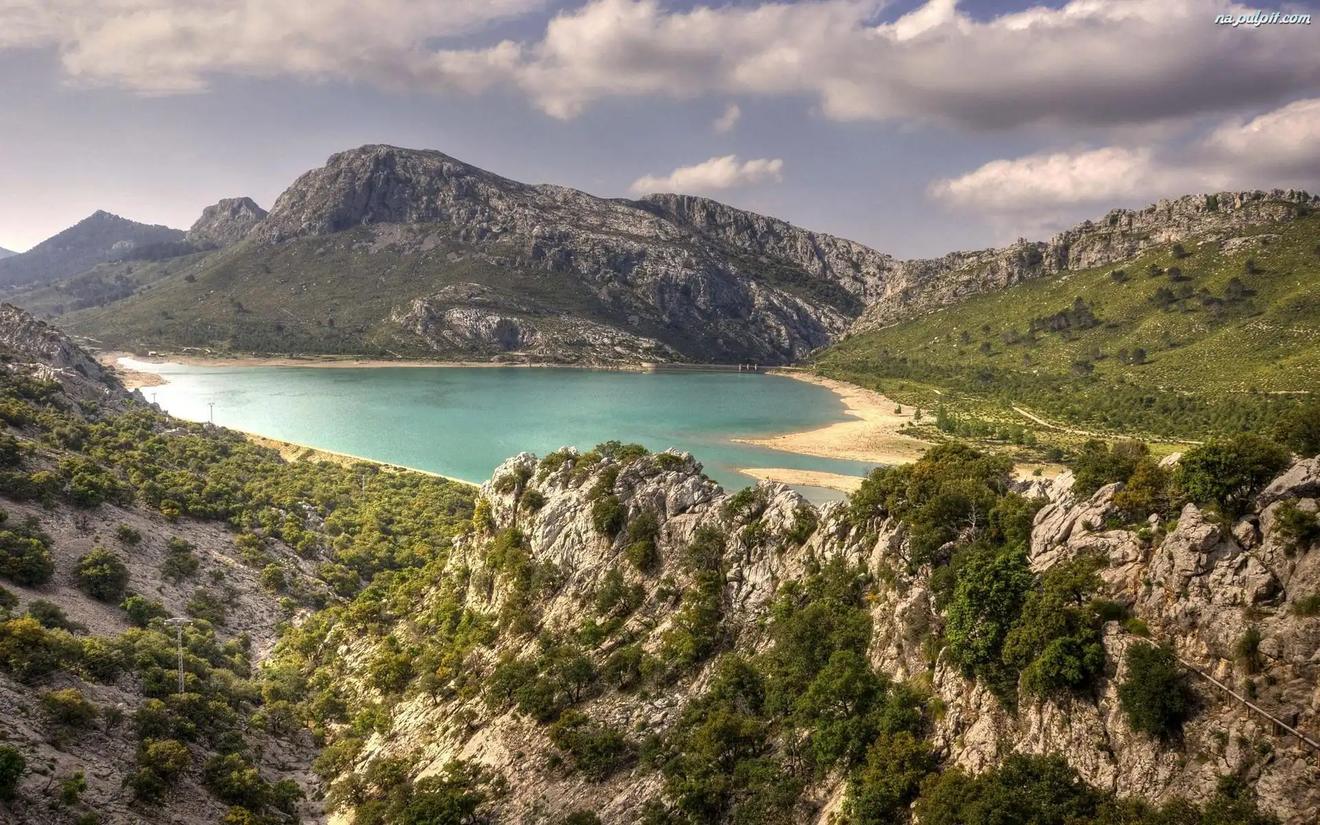Chmury, Jezioro, Góry, Roślinność Na Pulpit
