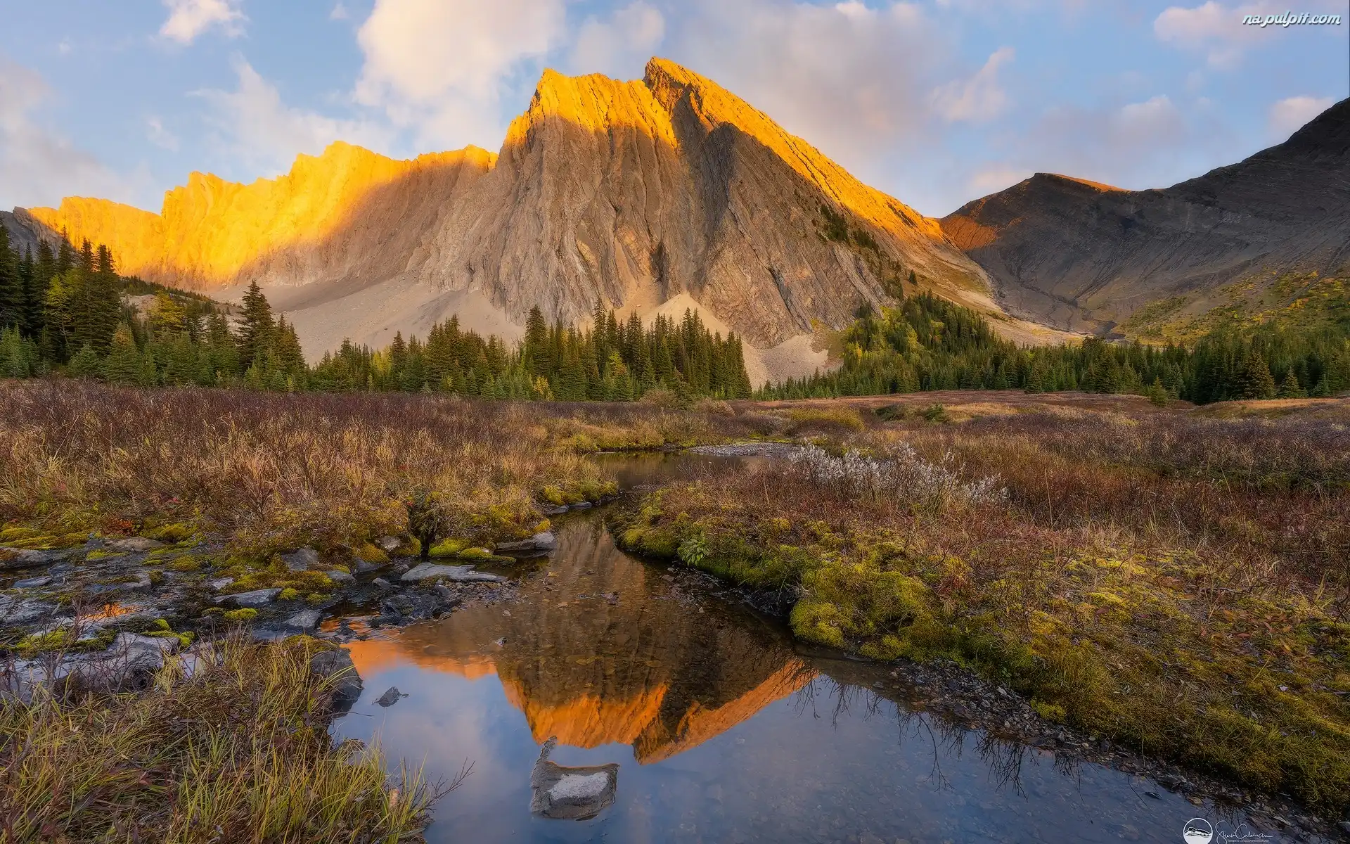 Chmury, Rzeka, Kanadyjskie Góry Skaliste, Kanada, Prowincja Alberta, Góry, Drzewa Na Pulpit