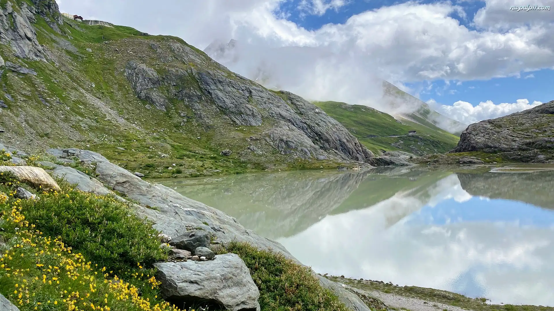 Góry, Jezioro, Skała, Chmury Na Pulpit