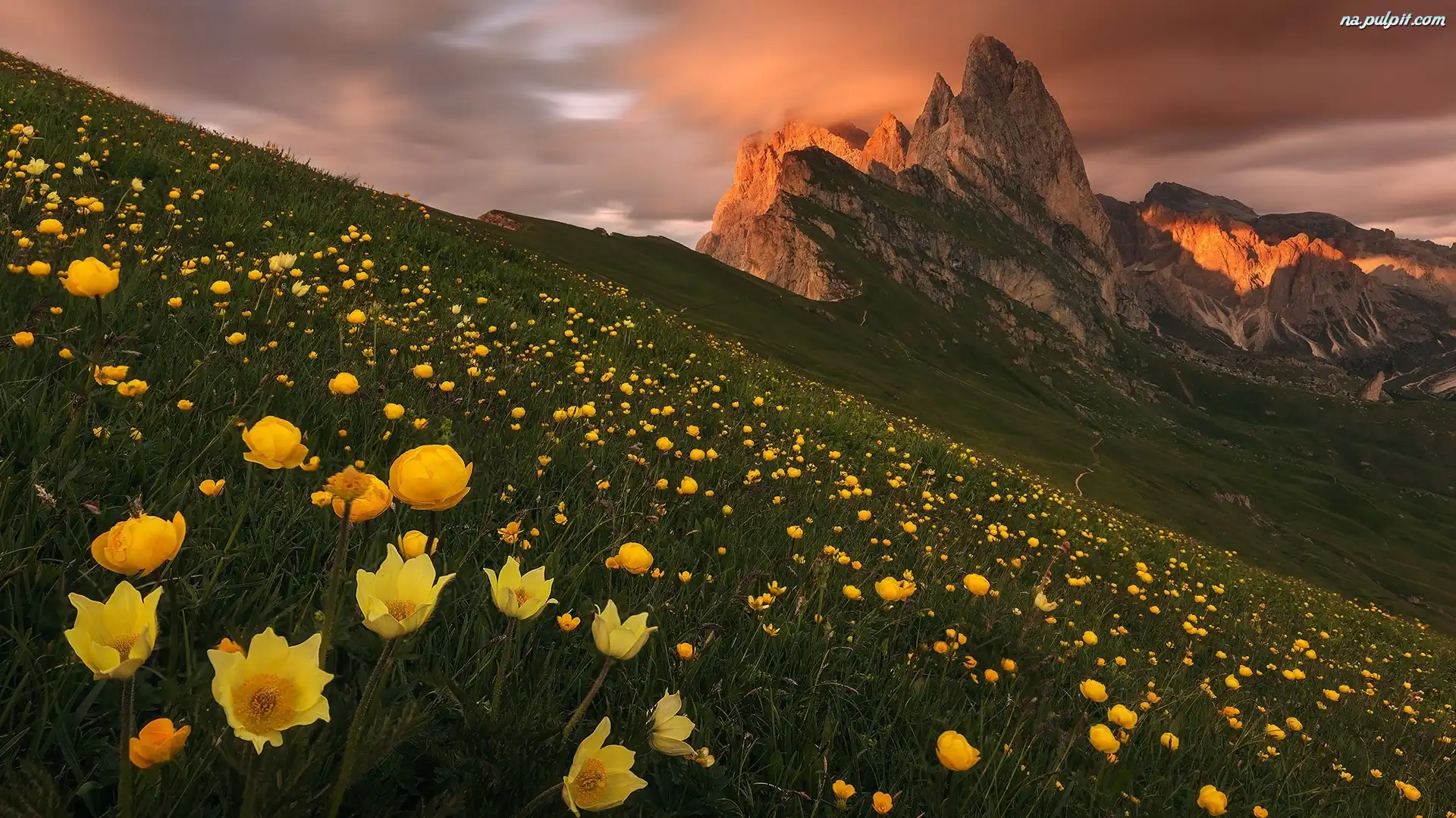 Chmury, Łąka, Szczyt, Góry, Kwiaty Na Pulpit