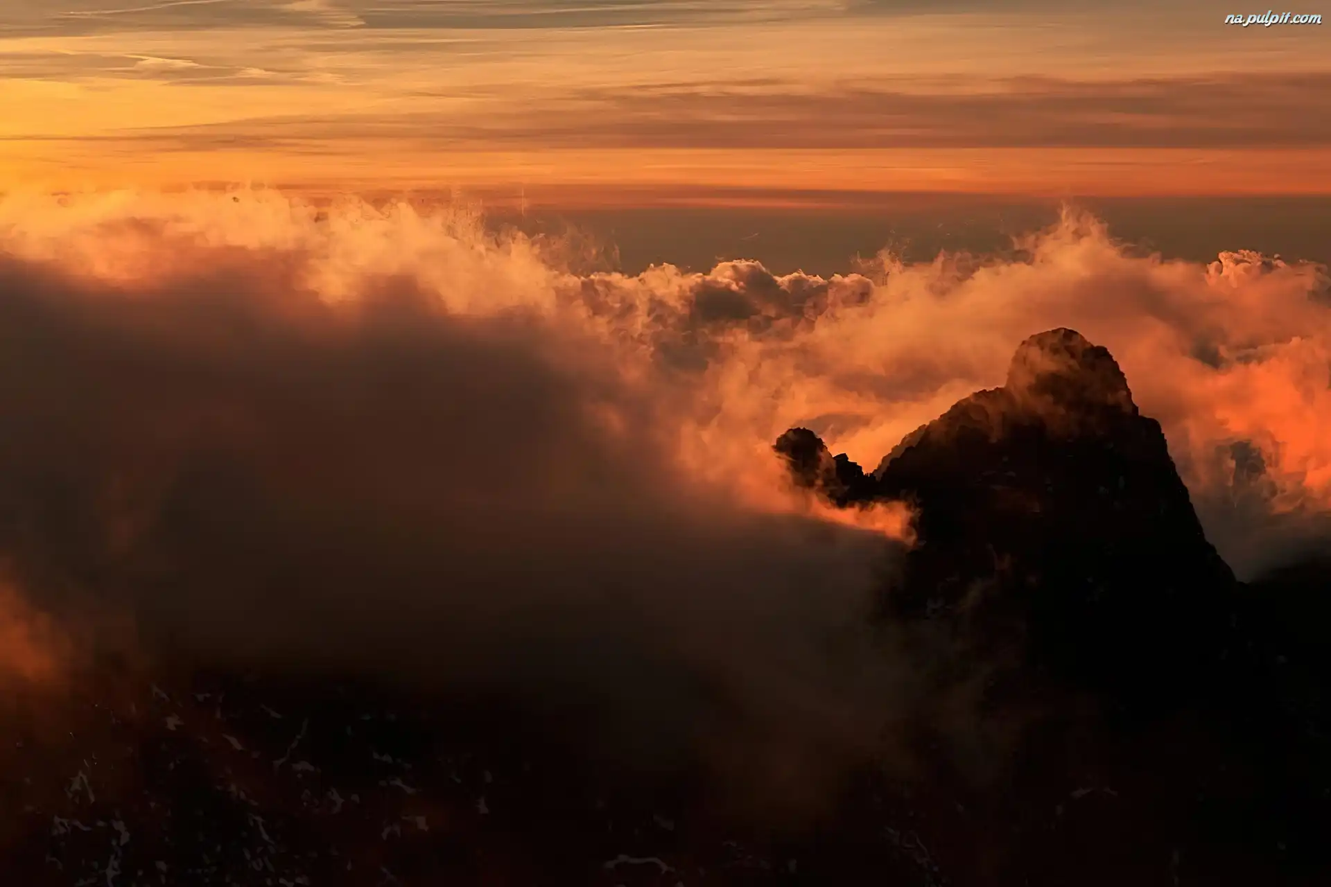 Chmury, Zachód, Góry, Słońca Na Pulpit