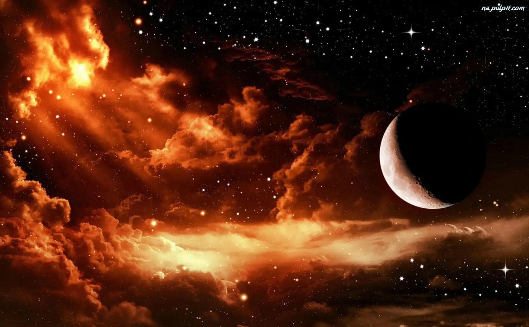 Gwiazdy, Chmury, Księżyc Na Pulpit