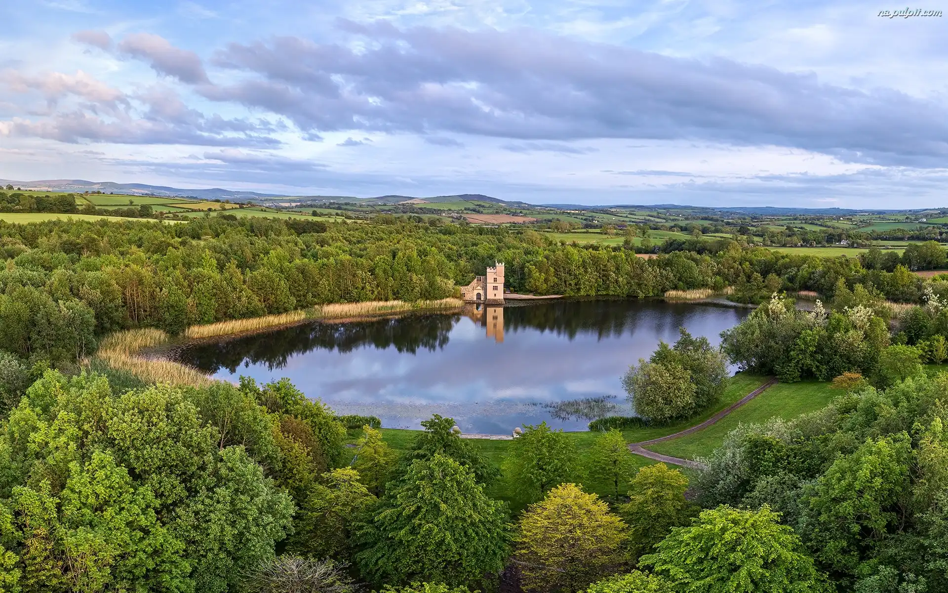 Irlandia, Budowla, Hrabstwo Donegal, Drzewa, Jezioro, Park Oakfield, Chmury Na Pulpit