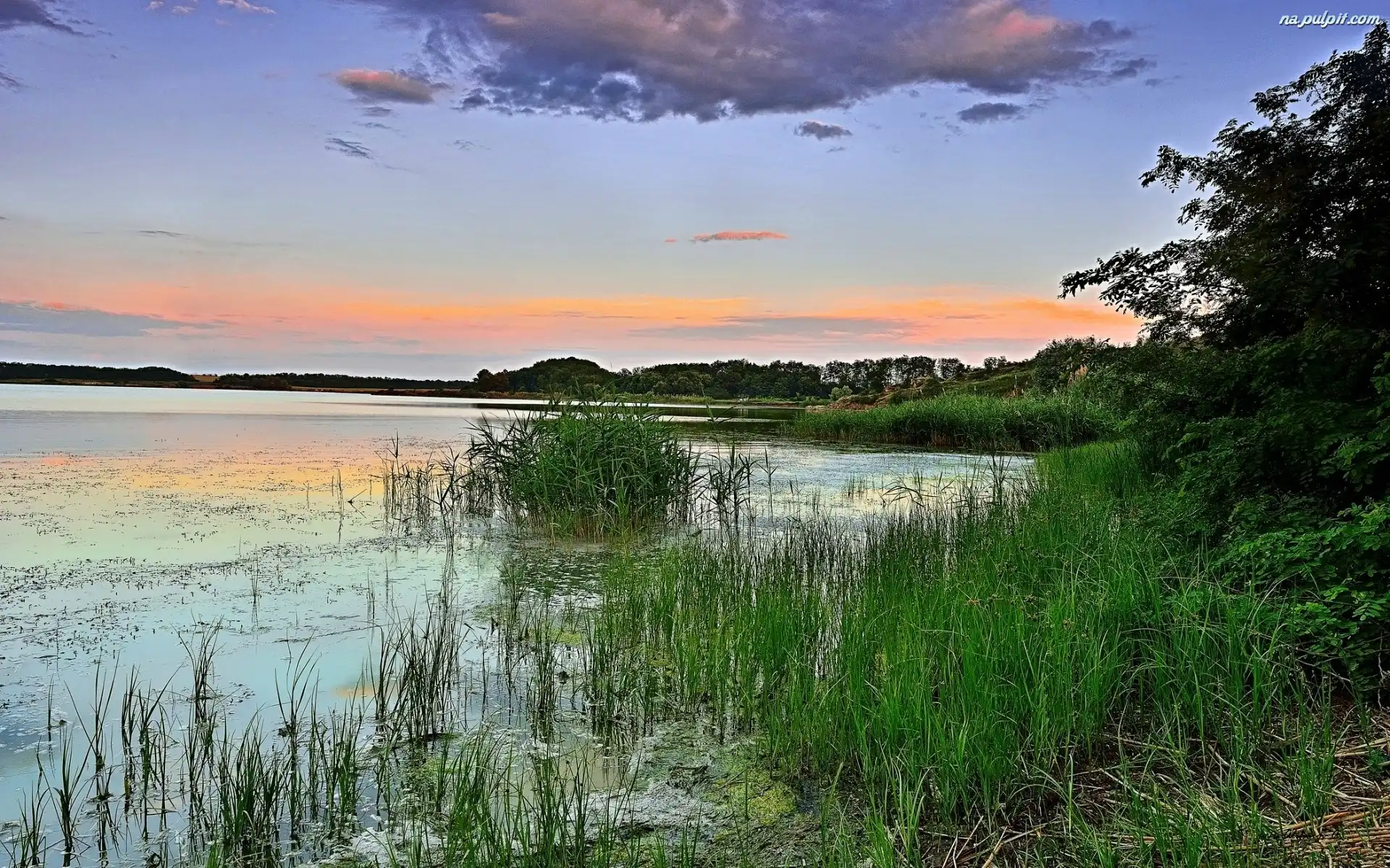 Chmury, Lasy, Jezioro, Trawy Na Pulpit