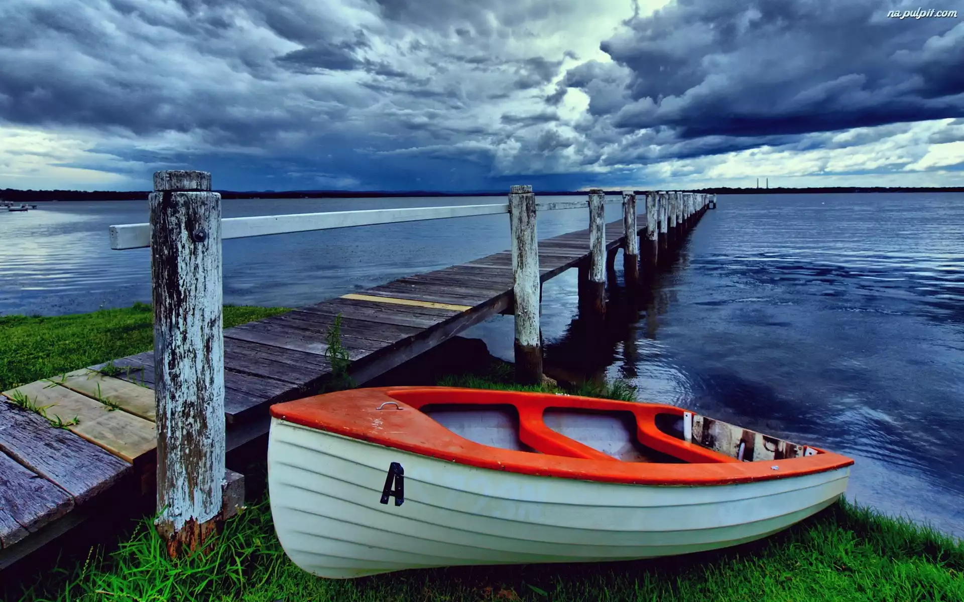 Chmury, Łódka, Jezioro, Molo Na Pulpit