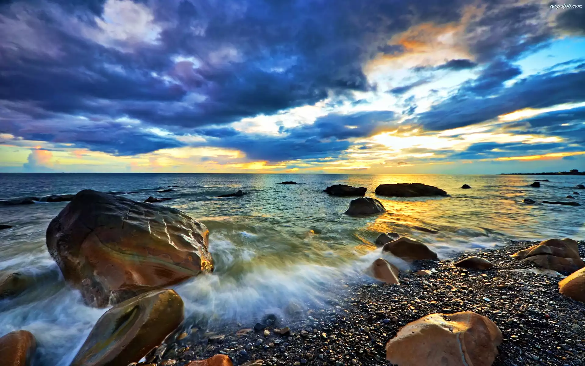 Chmury, Morze, Plaża, Kamienista, Fale Na Pulpit