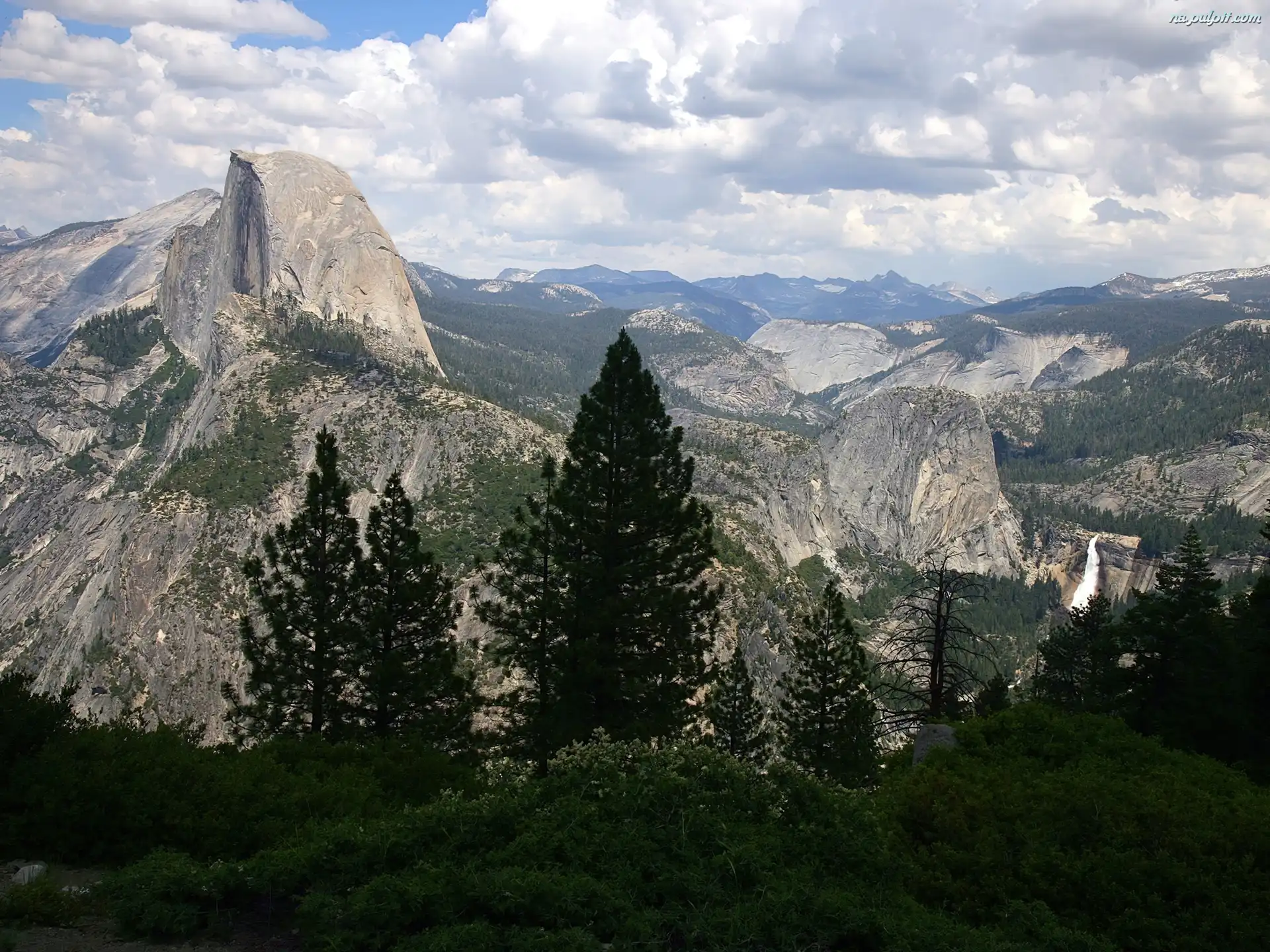 Chmury, Góry, Kamienne, Drzewa Na Pulpit