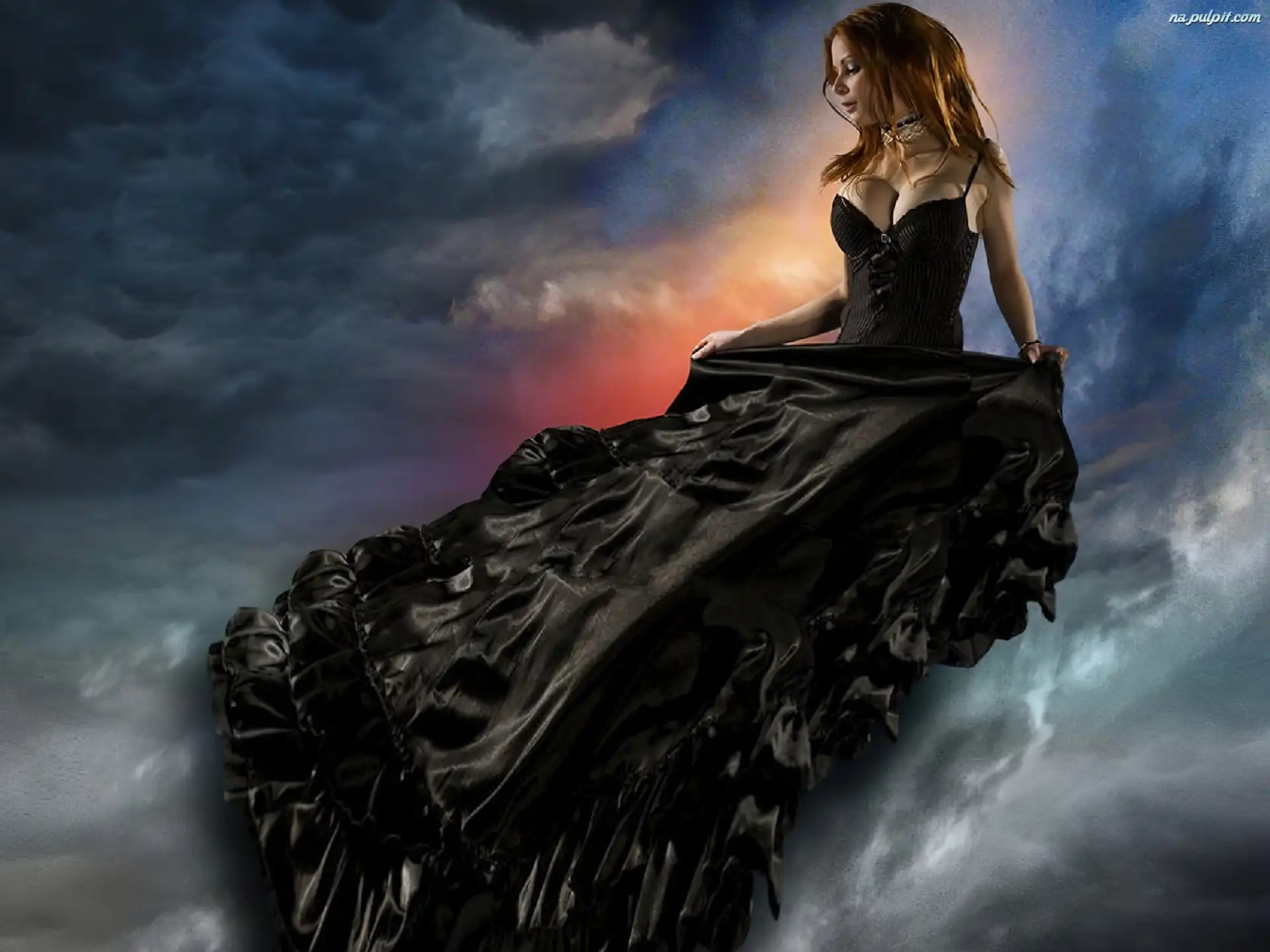 Kobieta, Czarna, Suknia, Chmury Na Pulpit