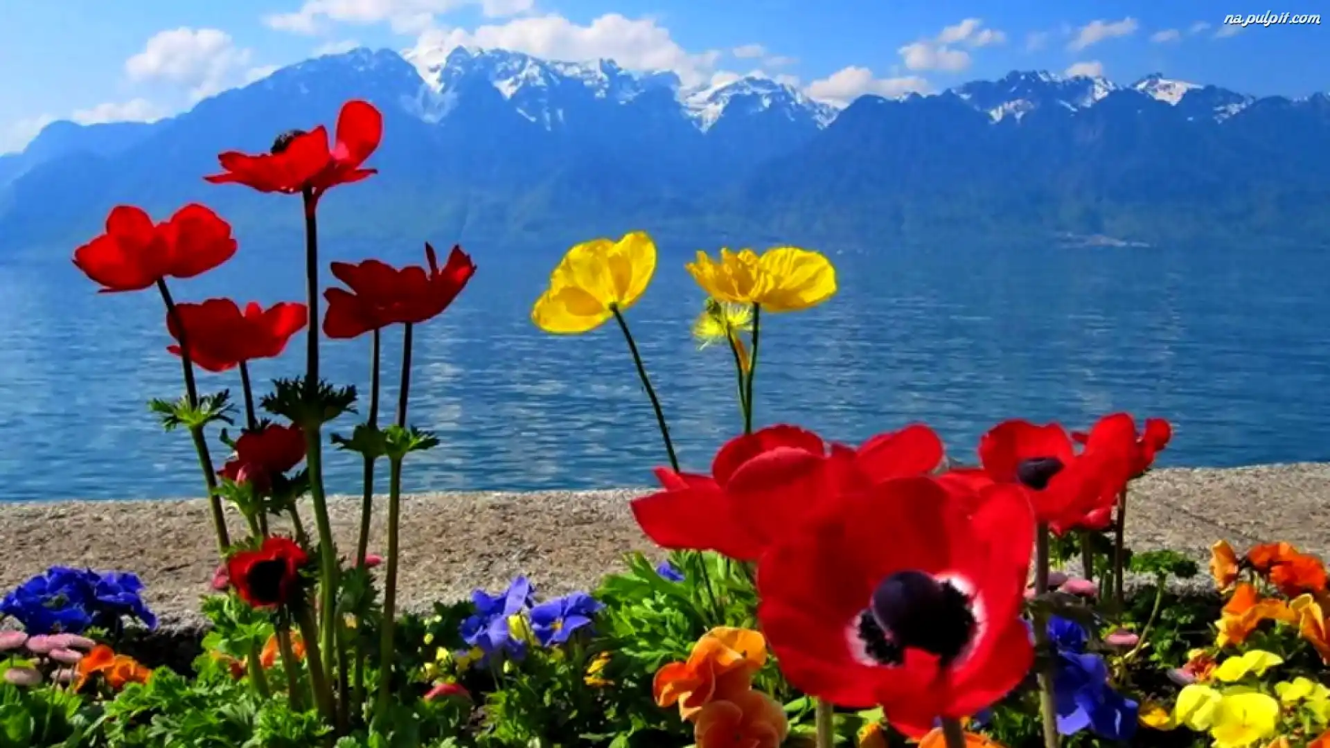 Chmury, Kwiaty, Kolorowe, Morze Na Pulpit
