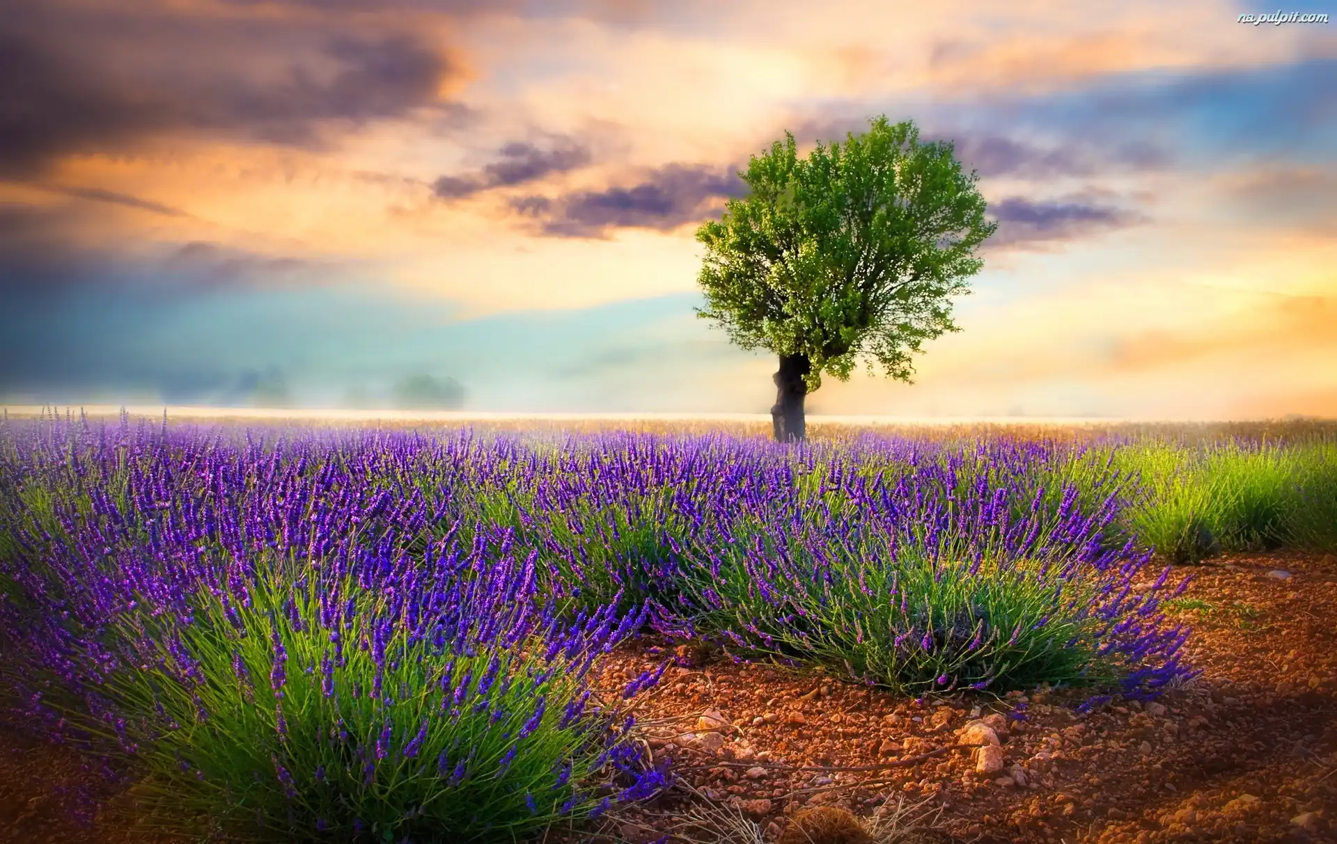 Chmury, Pole, Lawendowe, Drzewo Na Pulpit