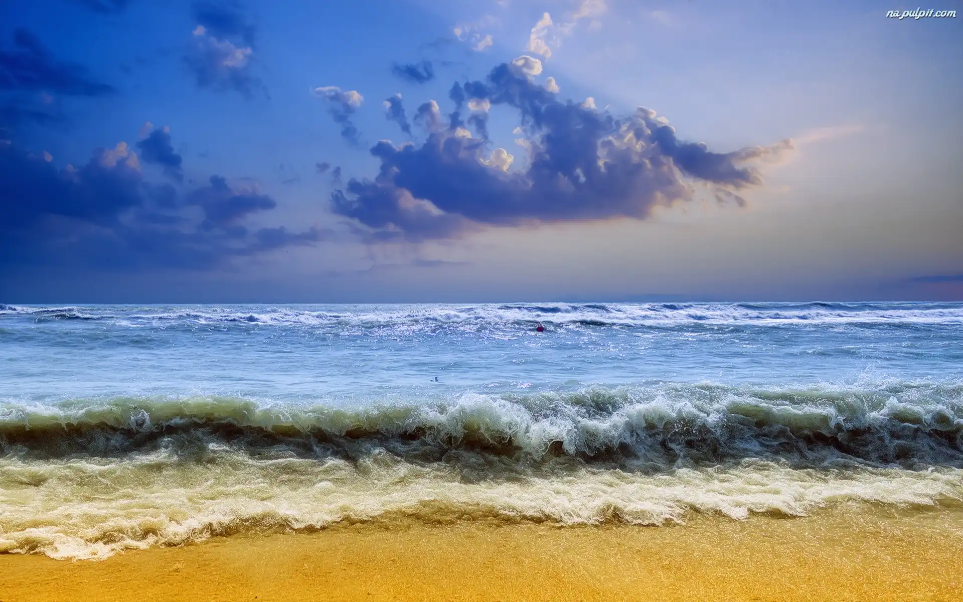 Chmury, Fale, Morze, Plaża Na Pulpit