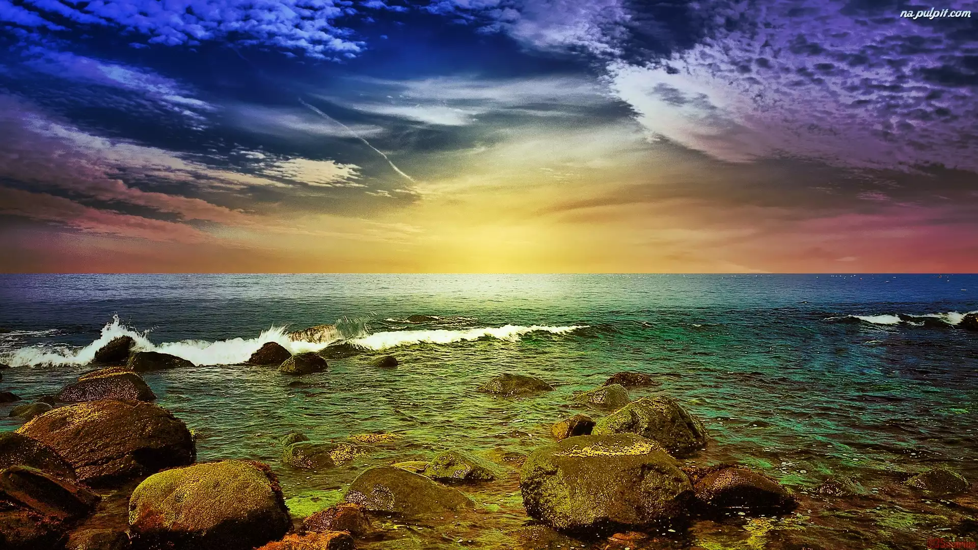 Chmury, Skały, Morze, Niebo Na Pulpit