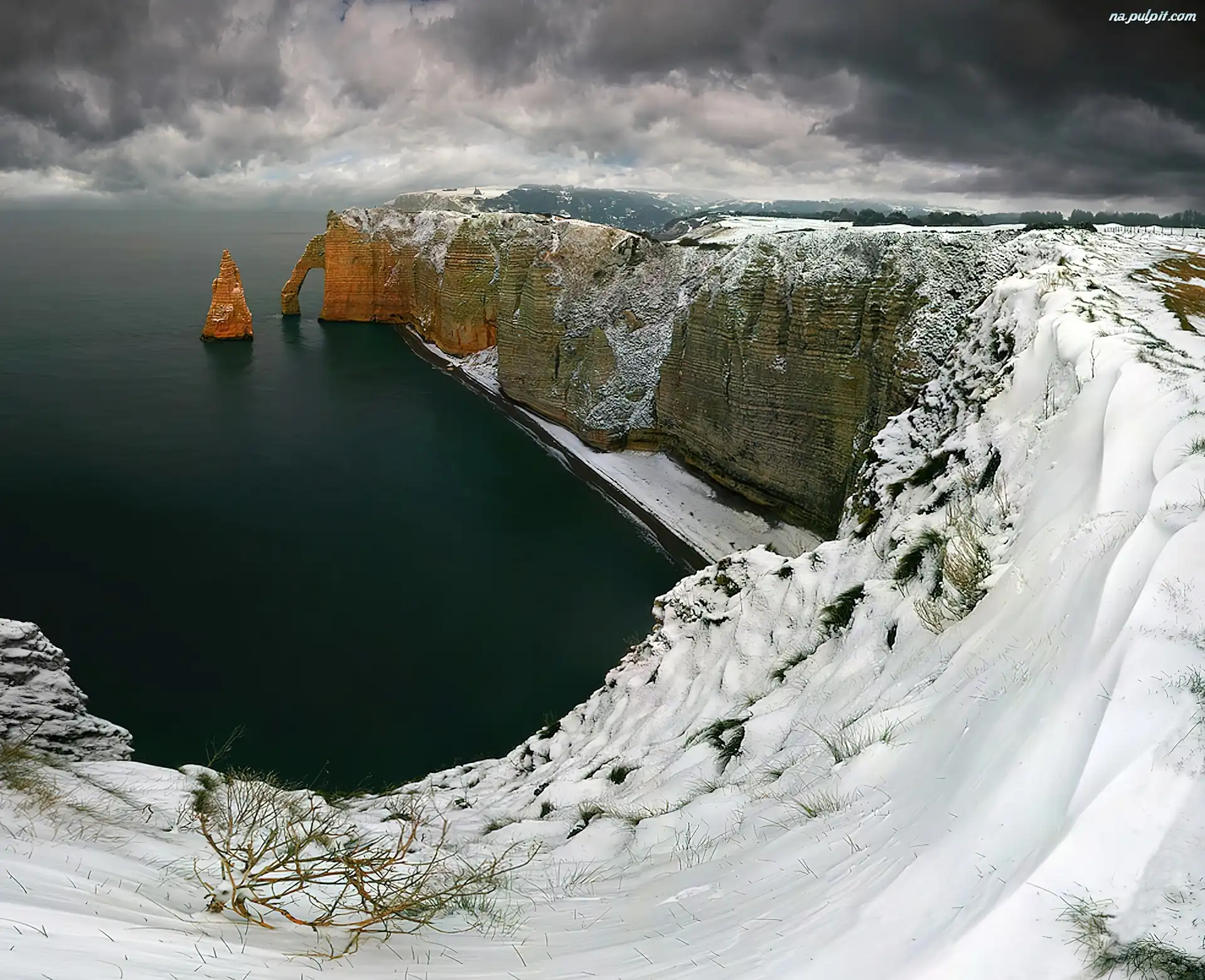 Chmury, Śnieg, Skały, Morze, Niebo Na Pulpit