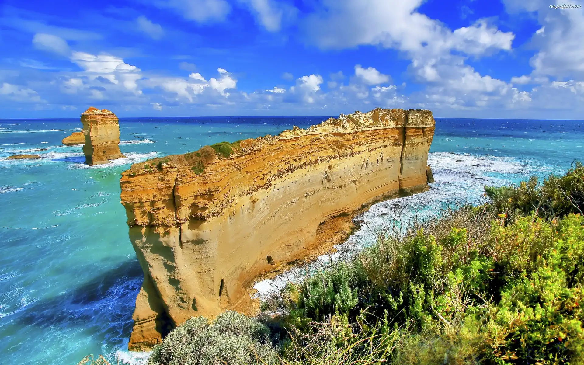 Chmury, Skały, Morze, Rośliny Na Pulpit