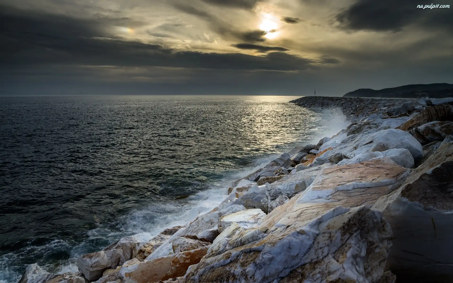 Chmury, Skały, Morze, Słońce Na Pulpit