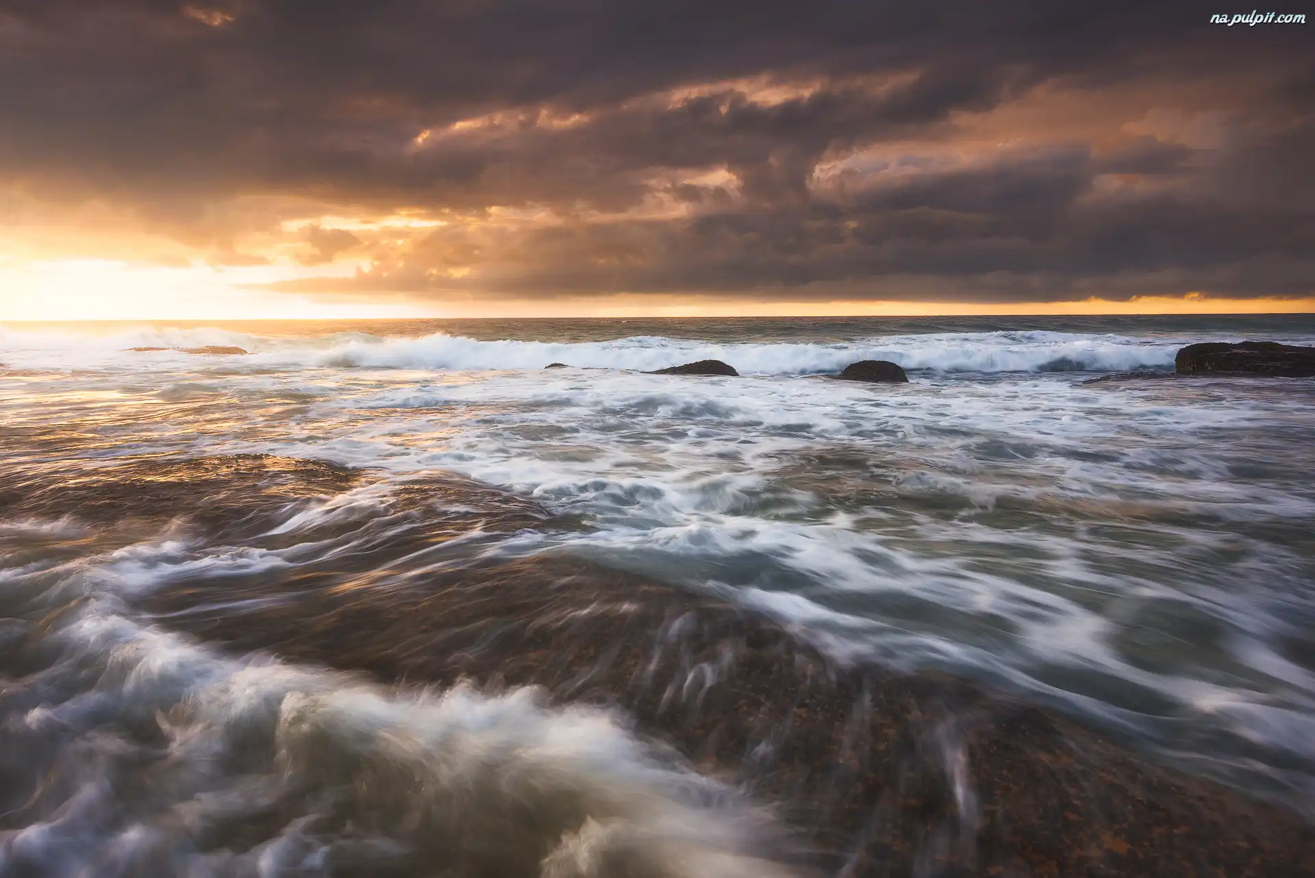 Chmury, Wschód słońca, Skały, Morze, Ciemne Na Pulpit