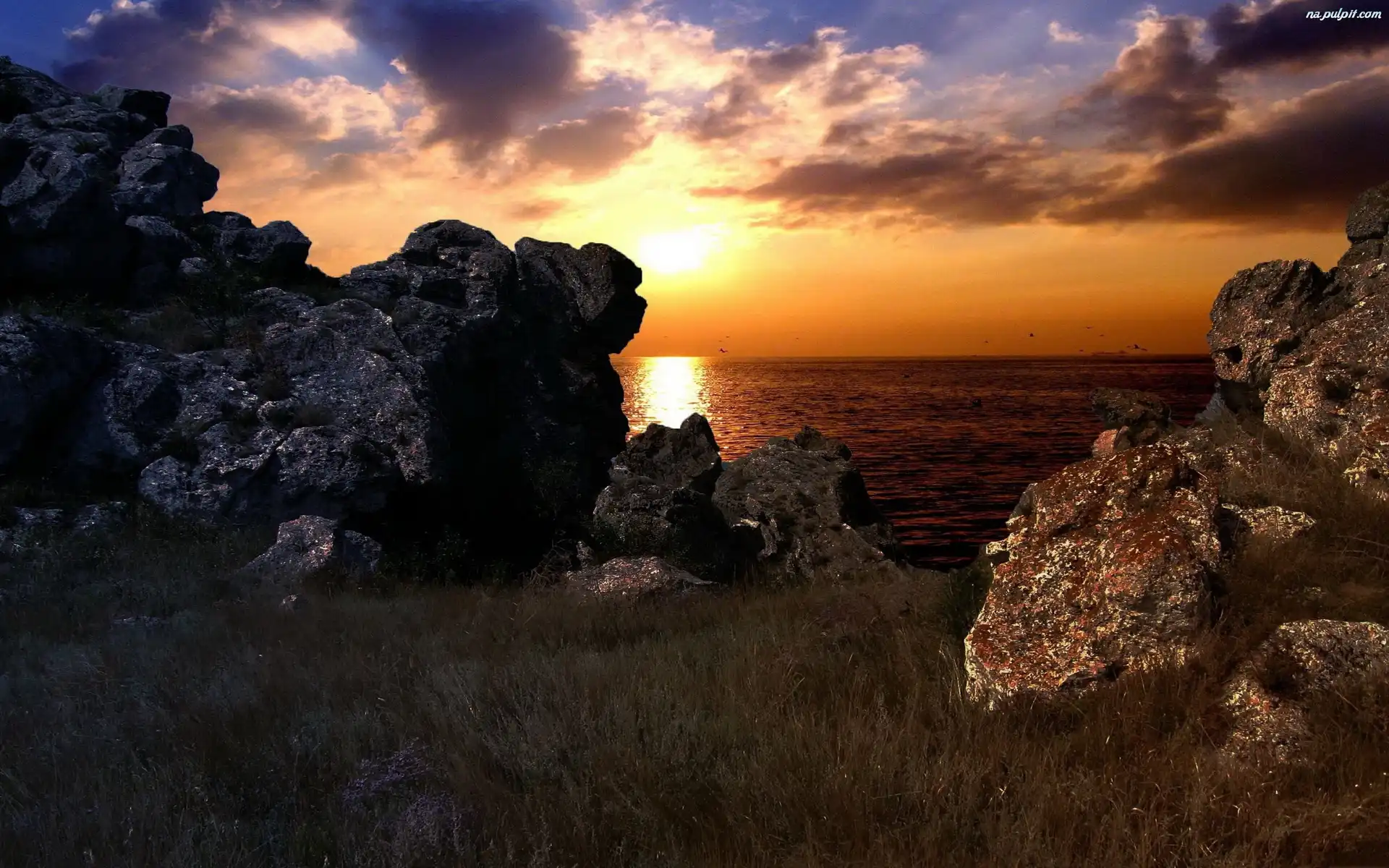 Chmury, Zachód, Morze, Słońca Na Pulpit