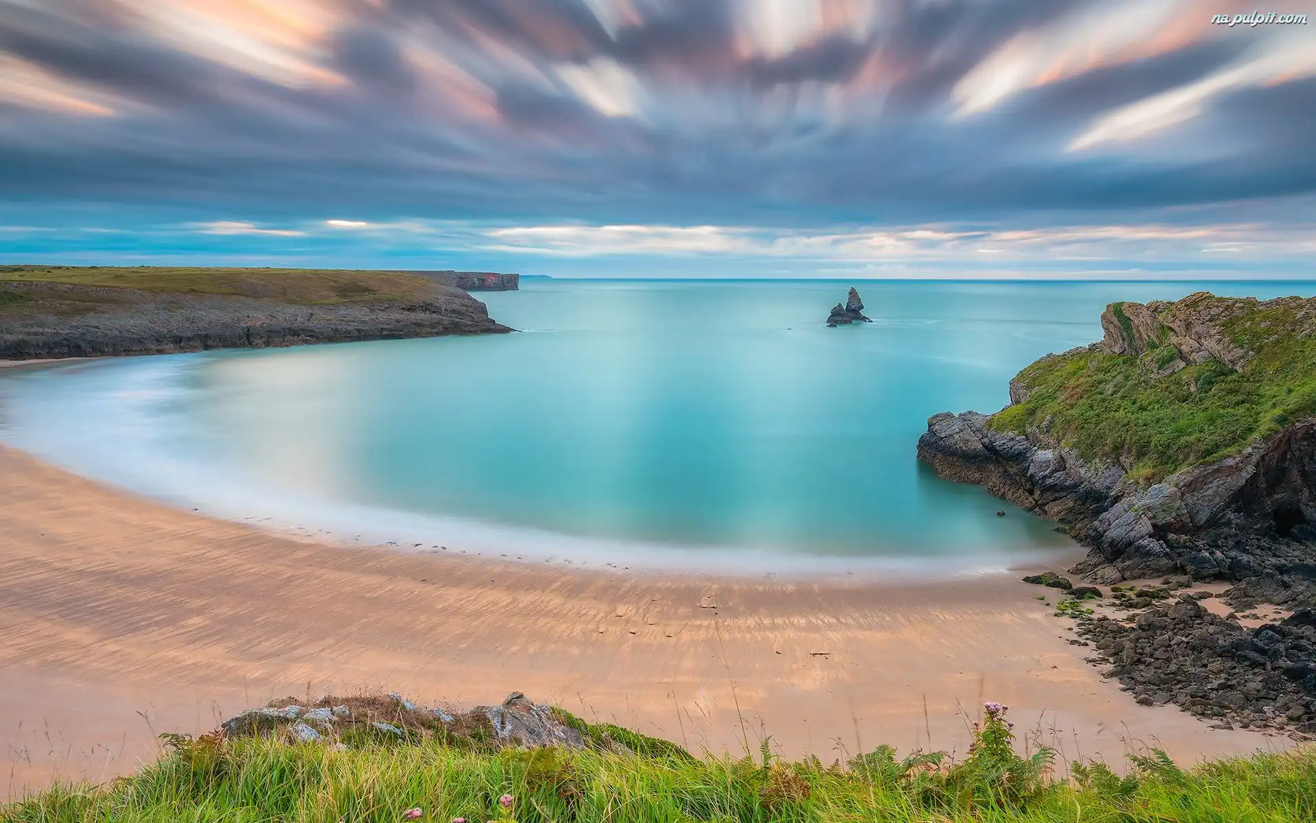 Chmury, Zatoka, Morze, Plaża Na Pulpit