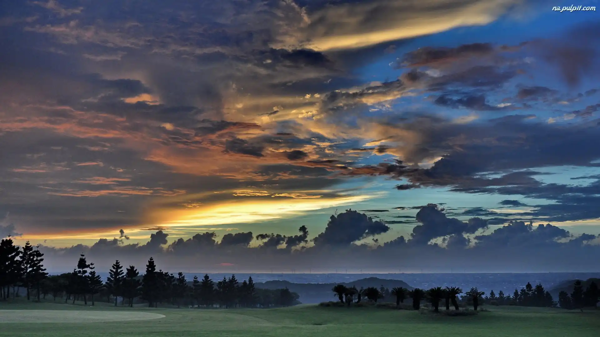 Chmury, Zachód, Drzewa, Niebo, Słońca Na Pulpit