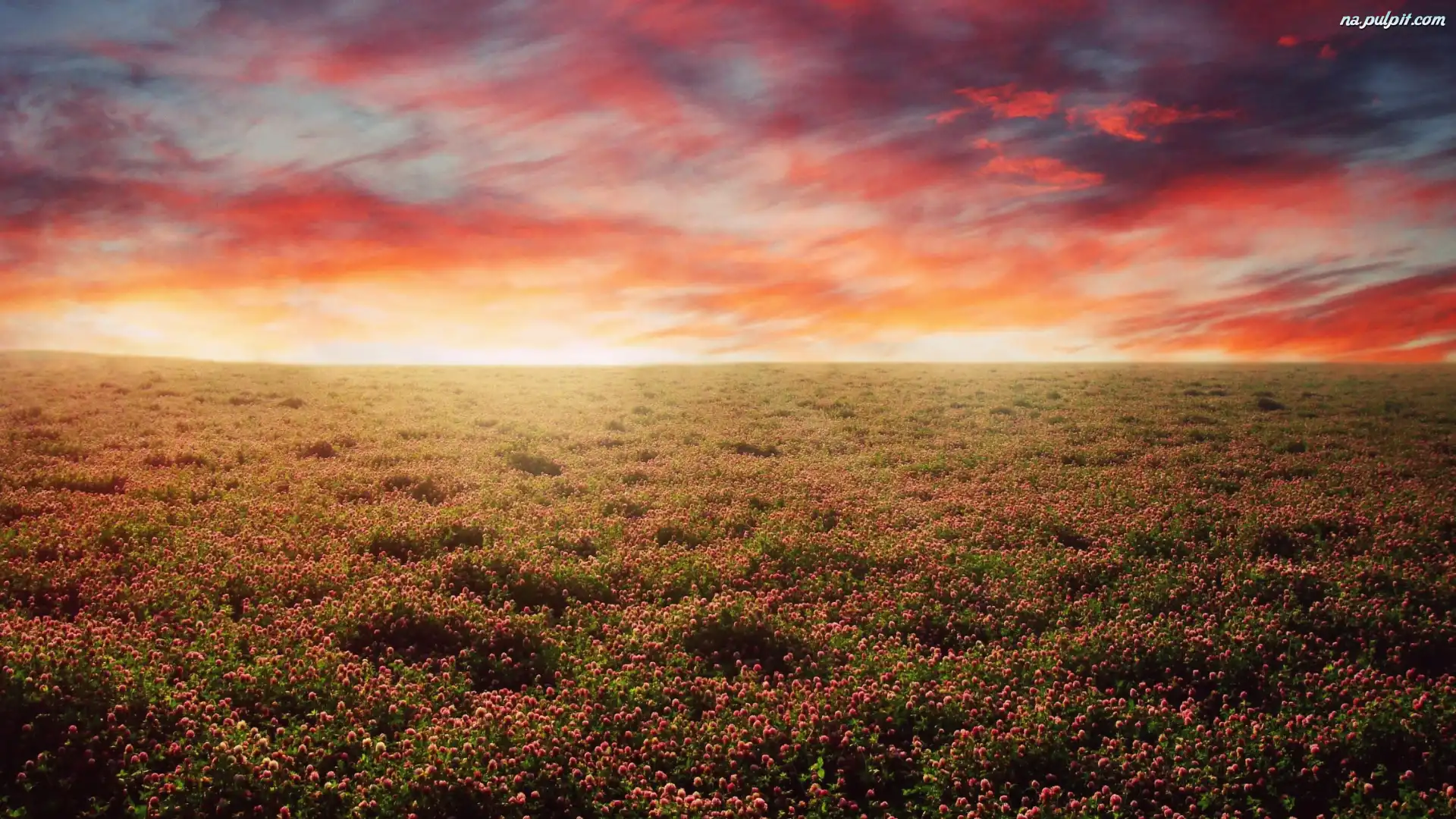 Chmury, Pole, Kwiaty, Zachód, Niebo, Słońca Na Pulpit